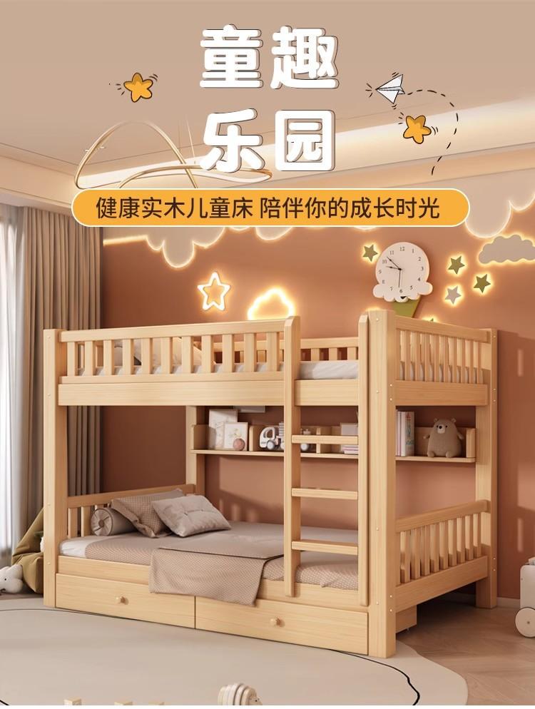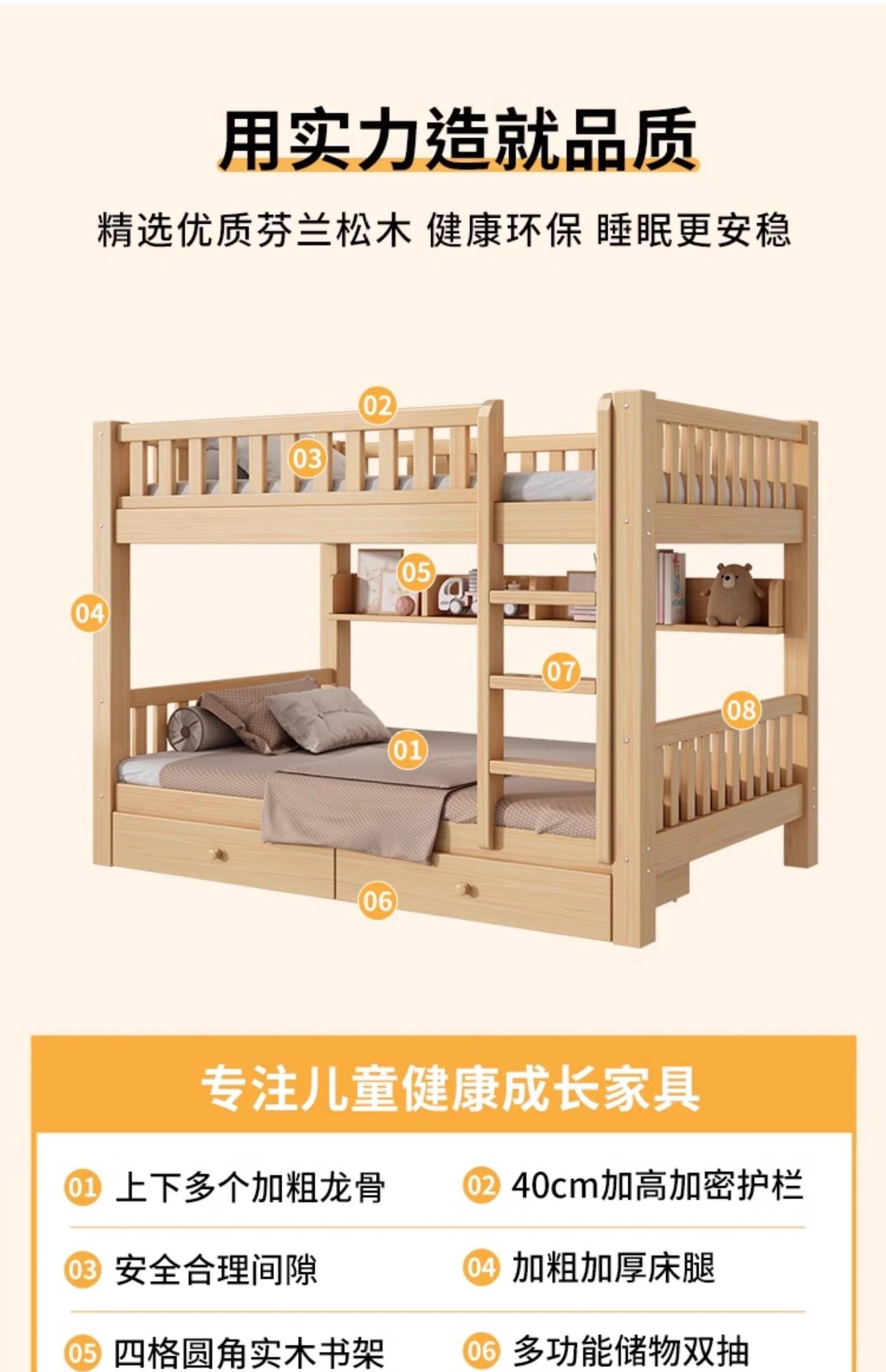 Cama de madeira para jardim de infância Beliche Madeira maciça Berçário da tarde Cama alta e baixa Cama Cama de confiança para crianças da escola primária