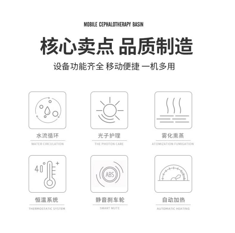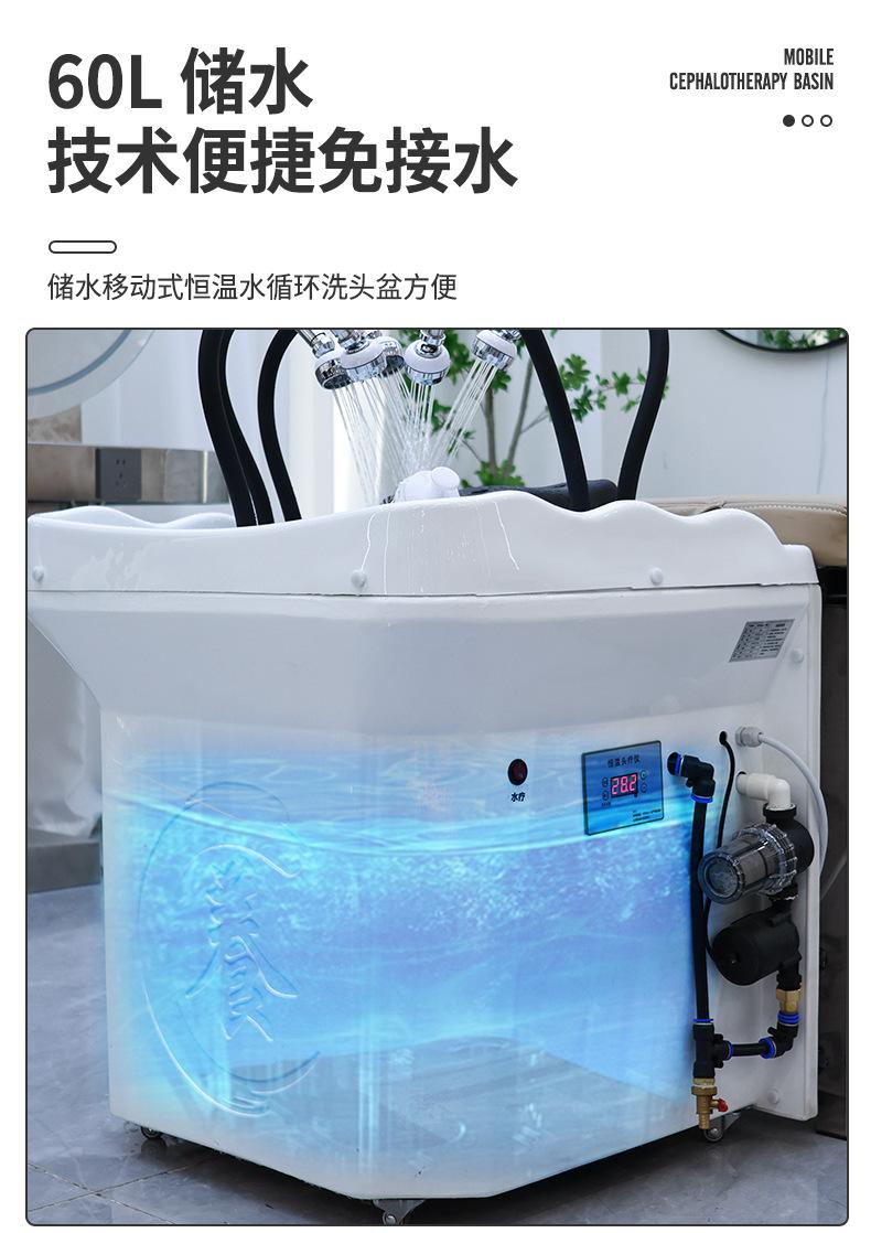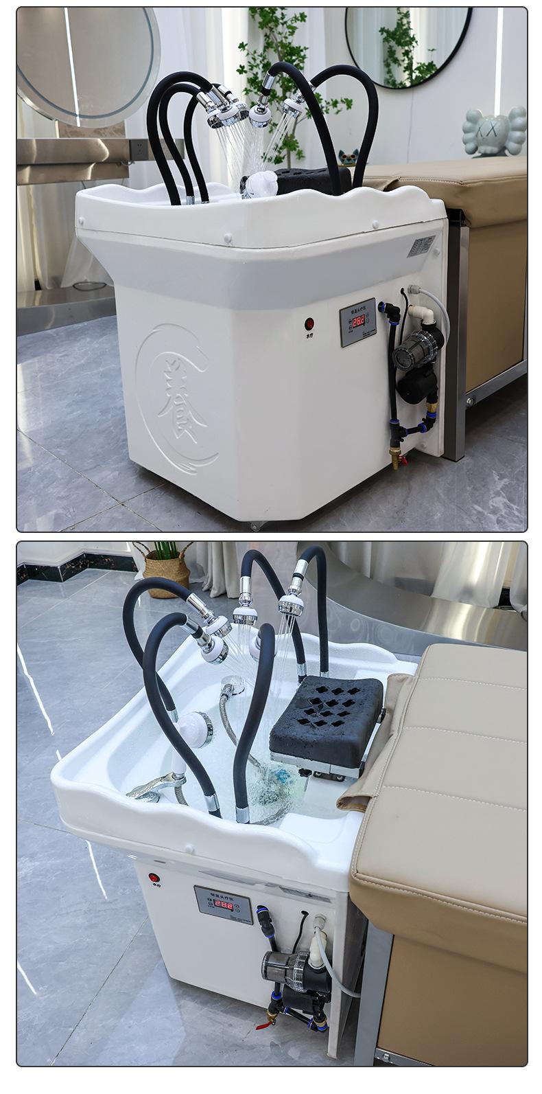Instrumento de terapia de cabeça móvel salão de beleza barra de lavagem enxertia bacia de xampu temperatura constante circulação de água fumigação cabeça sopa shampoo cama