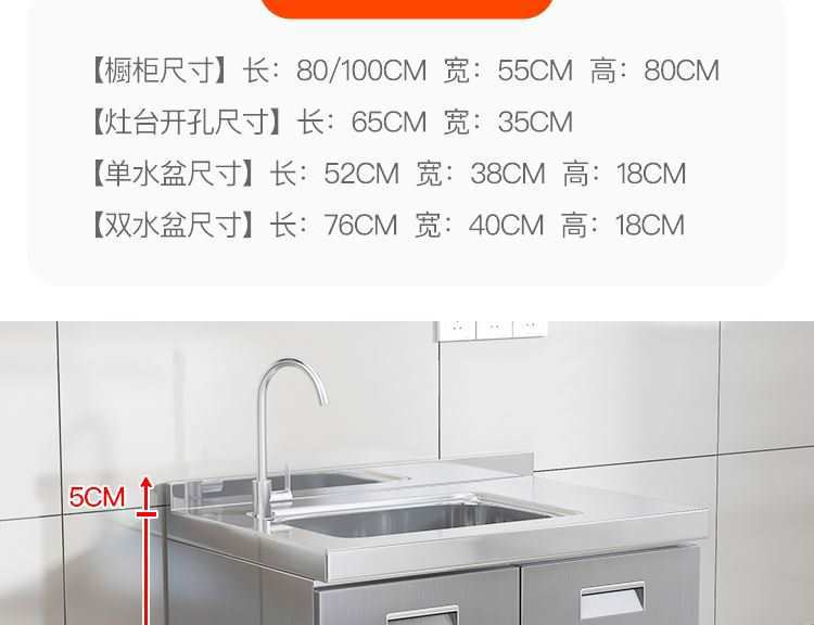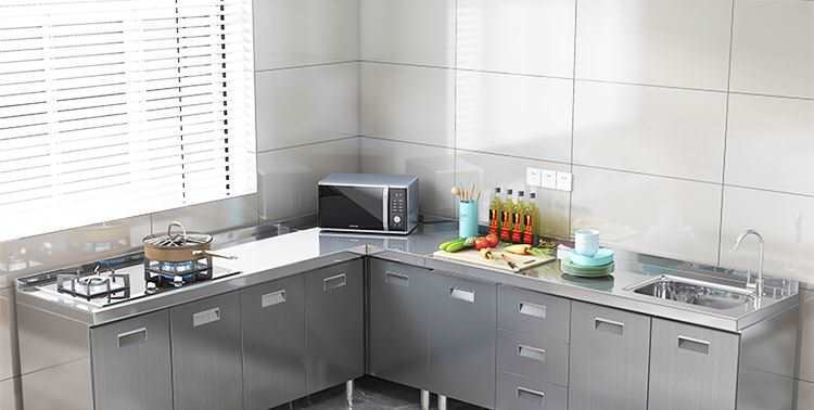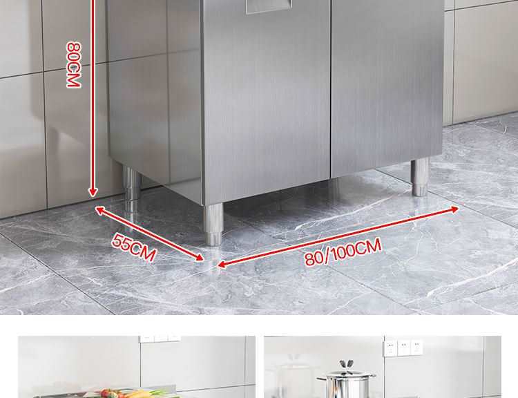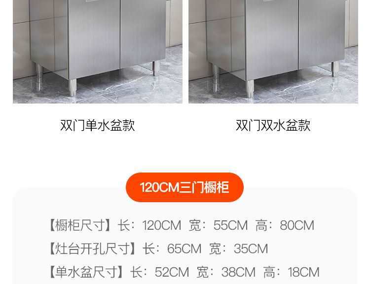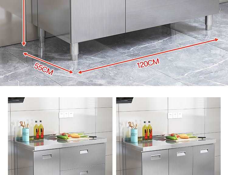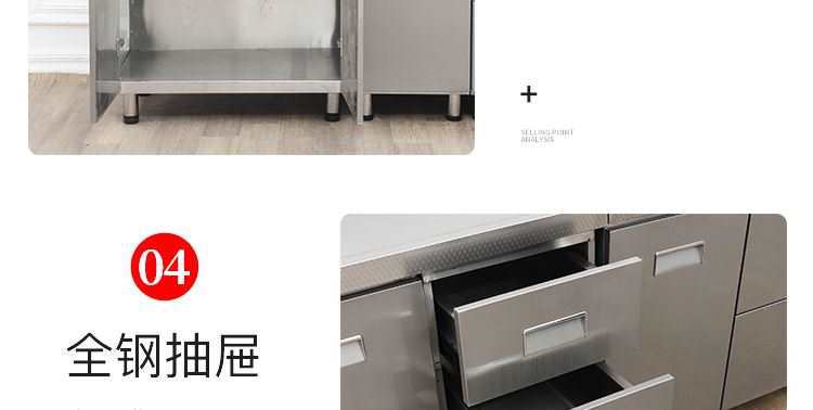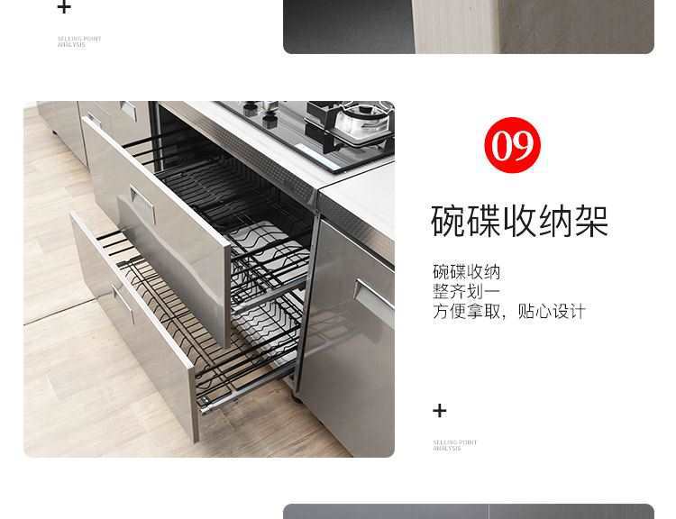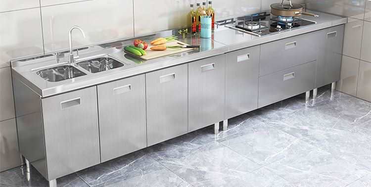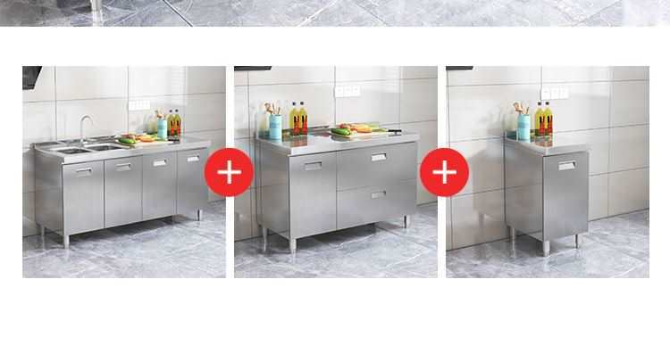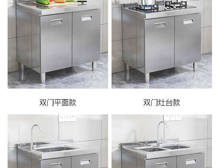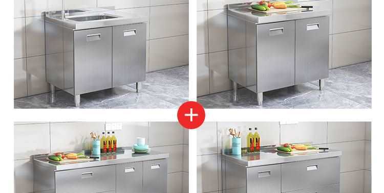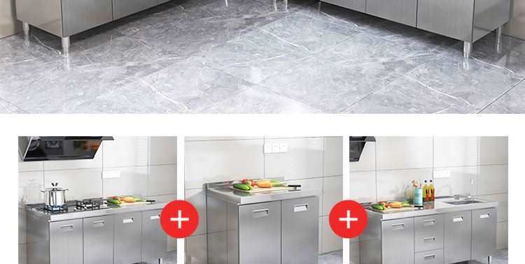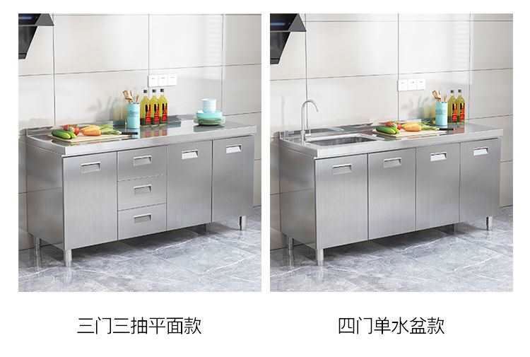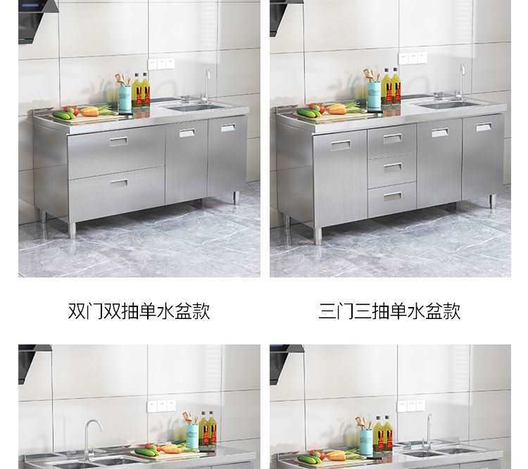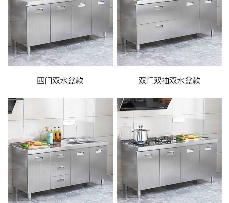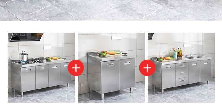 Venda por atacado todo o armário de cozinha de aço inoxidável armário de fogão integrado armário de armazenamento de combinação doméstica aluguel de armário simples geral