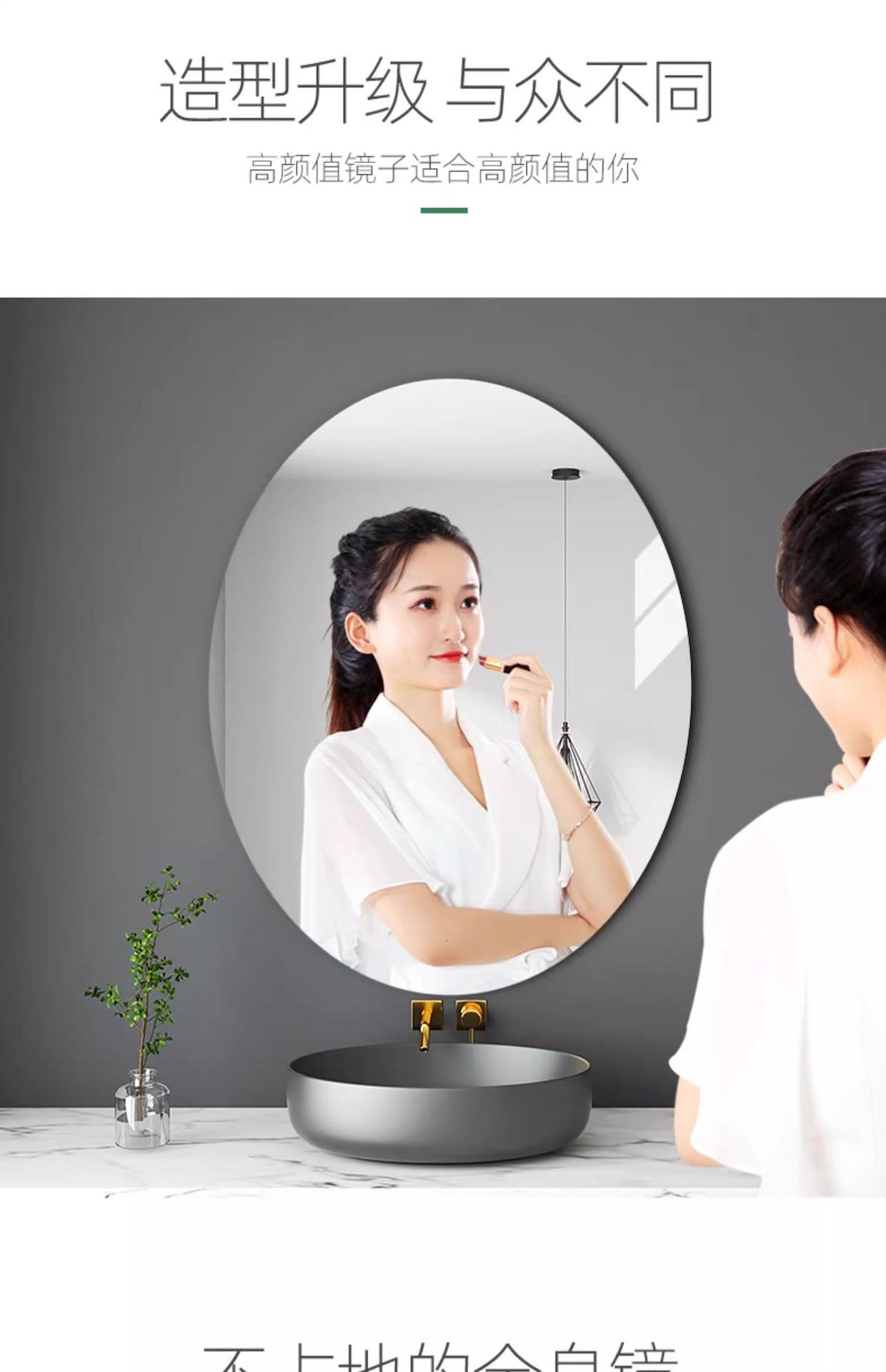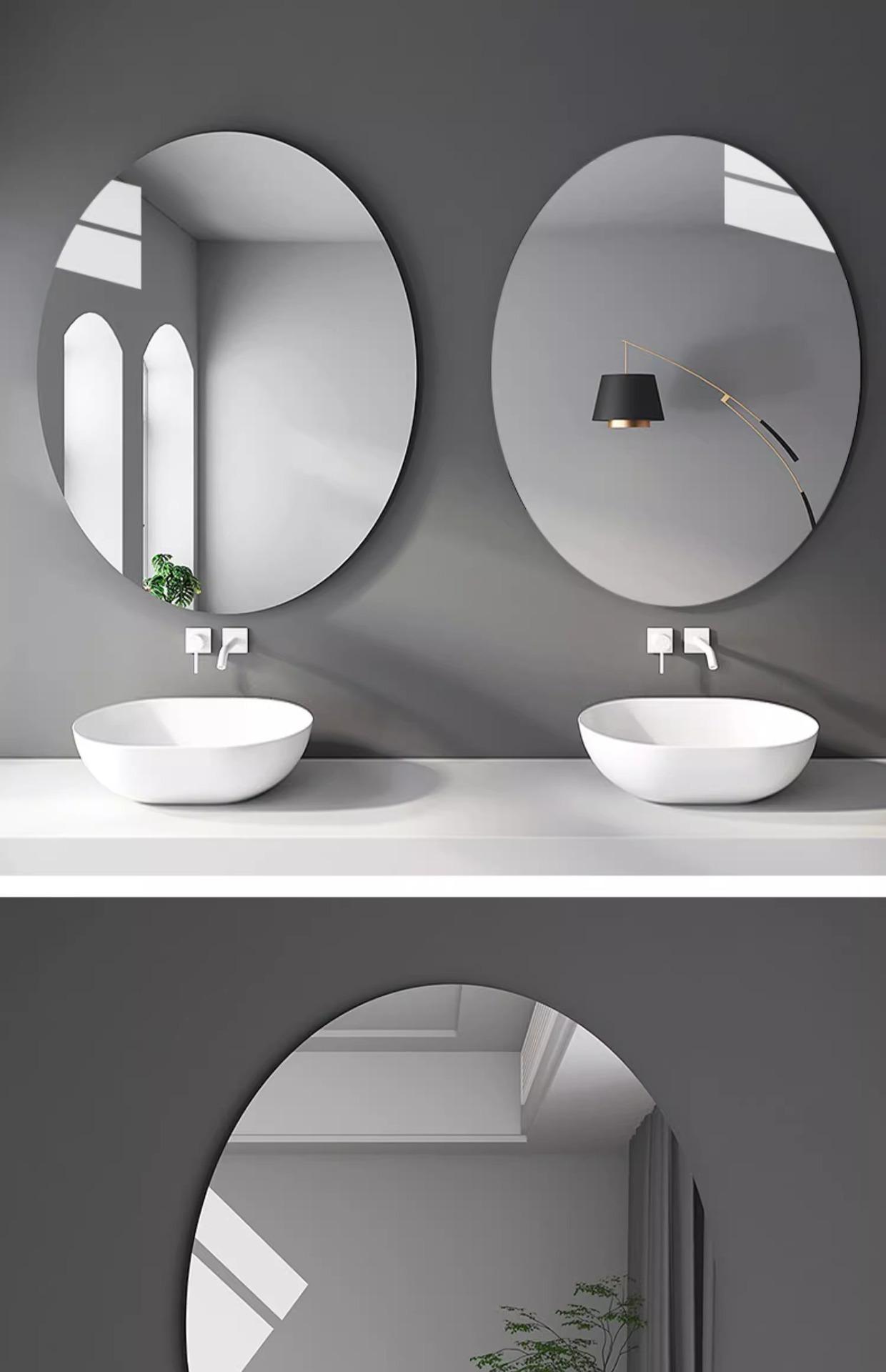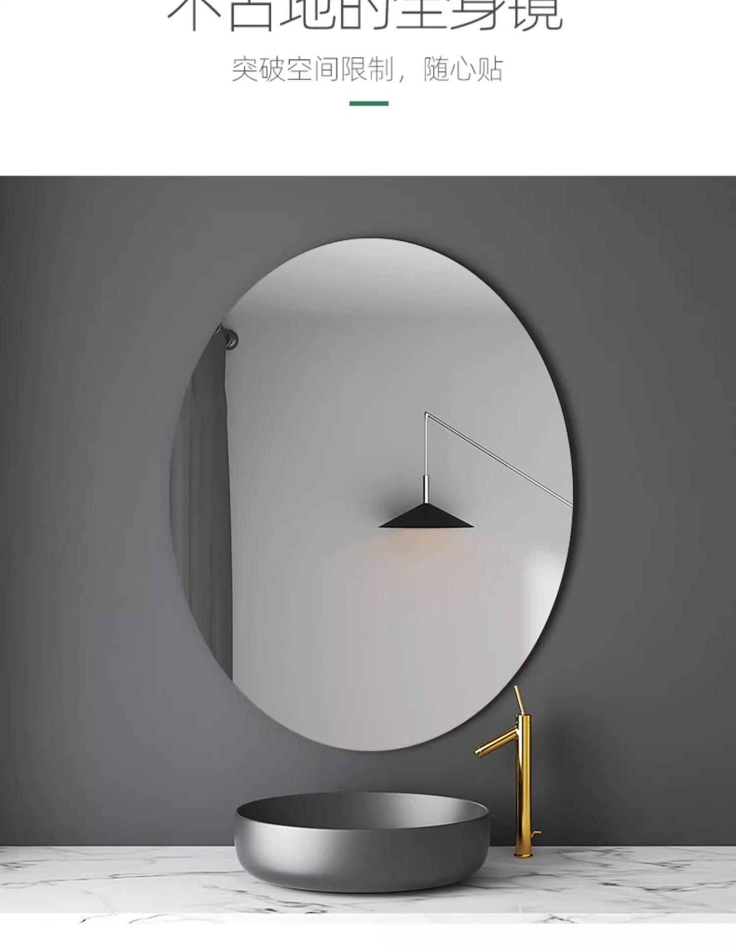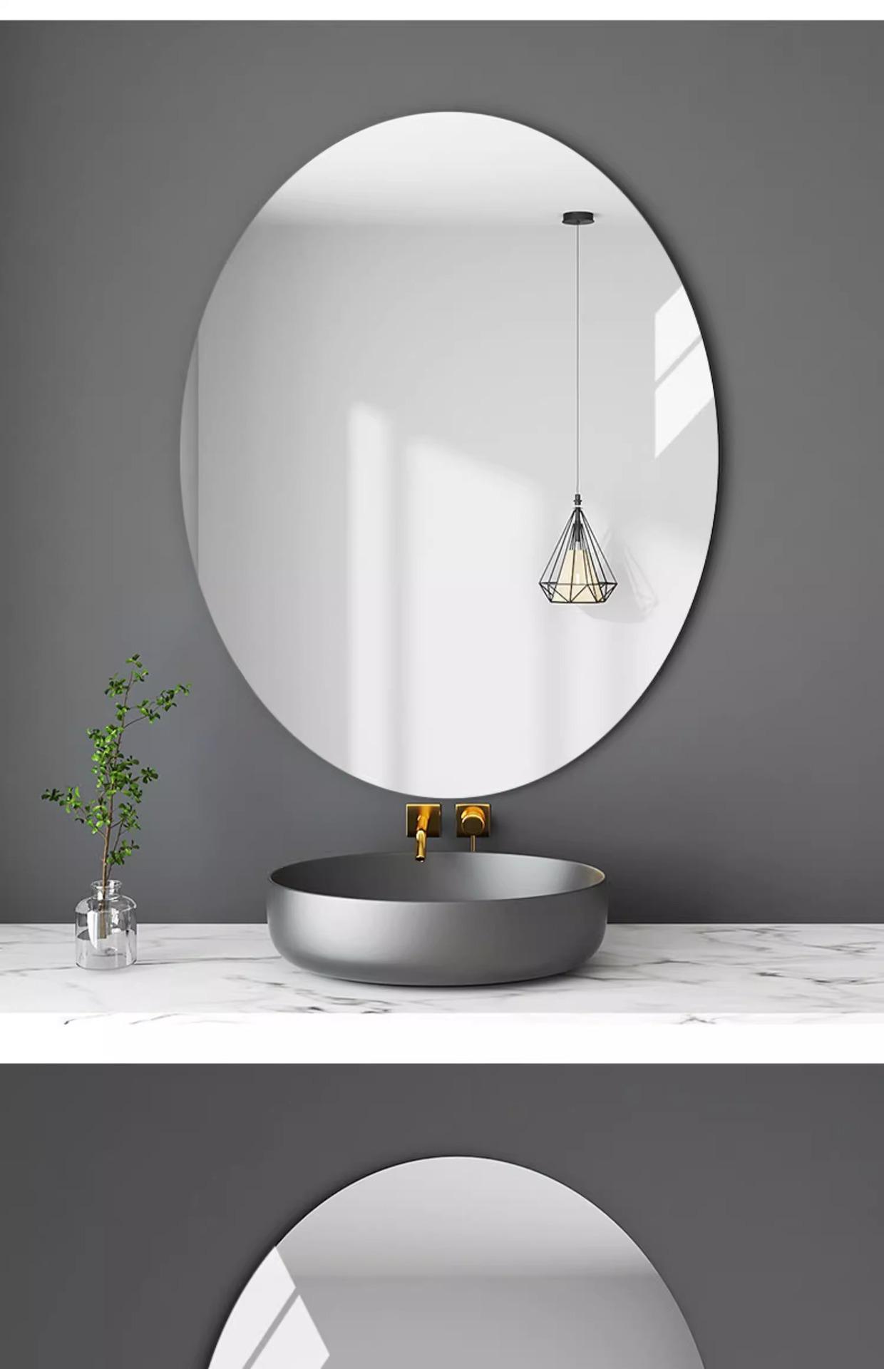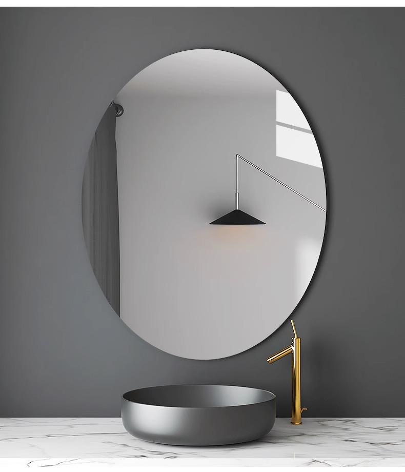 Espelho de banheiro de acrílico de luxo leve, espelho autoadesivo para banheiro, espelho cosmético colado na parede, espelho redondo para vestir