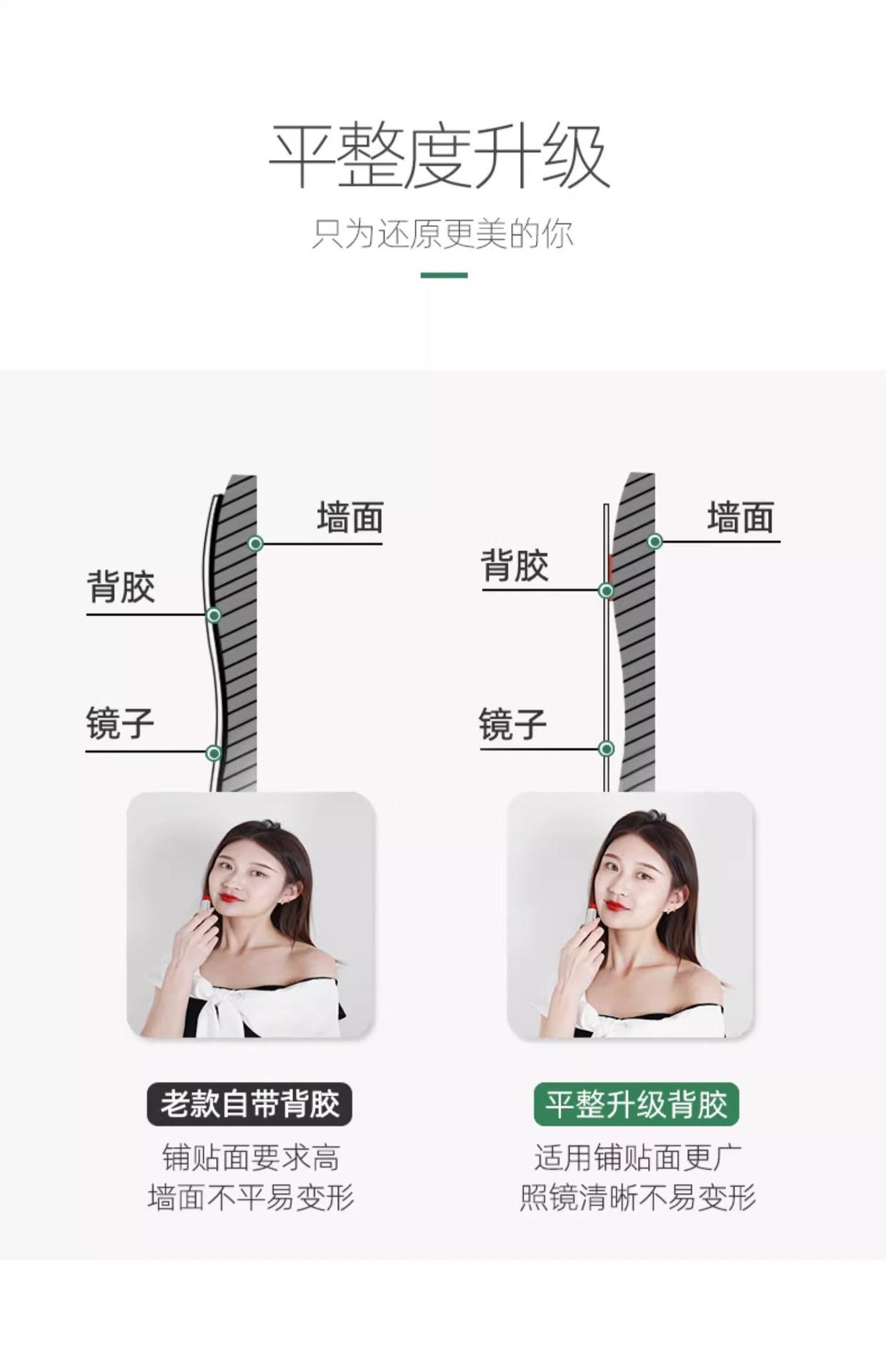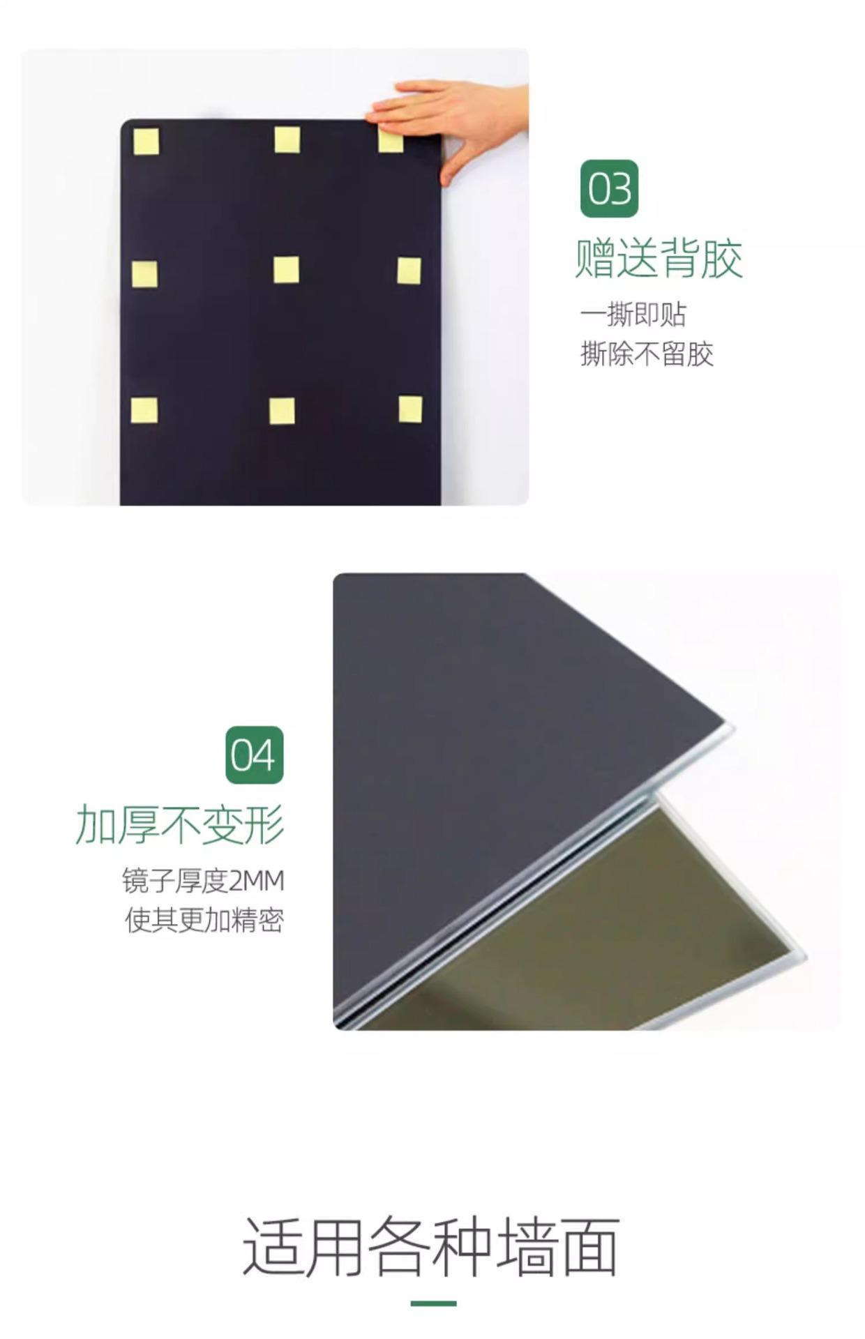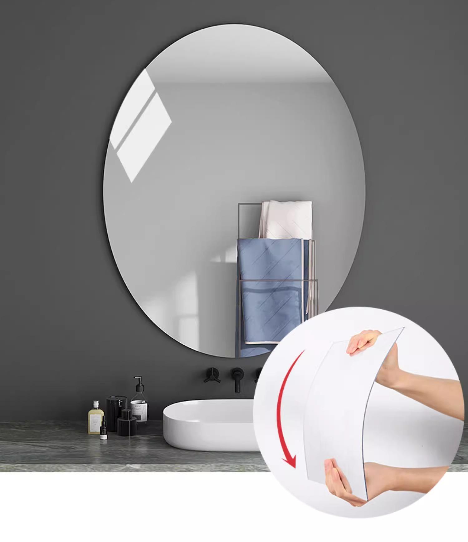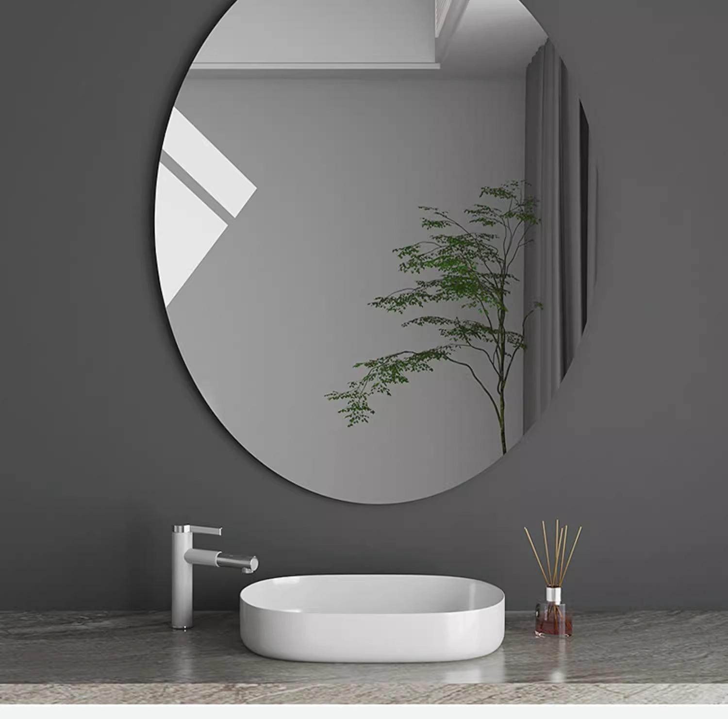 Espelho de banheiro de acrílico de luxo leve, espelho autoadesivo para banheiro, espelho cosmético colado na parede, espelho redondo para vestir