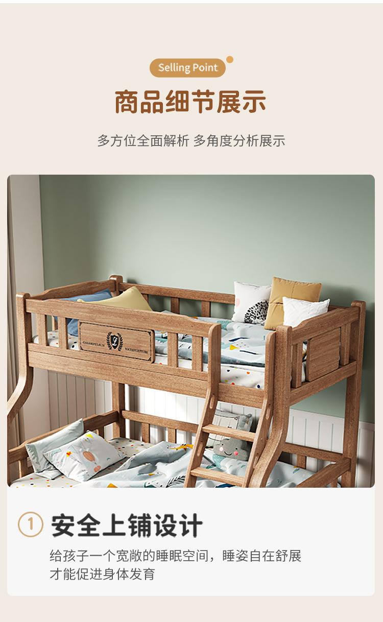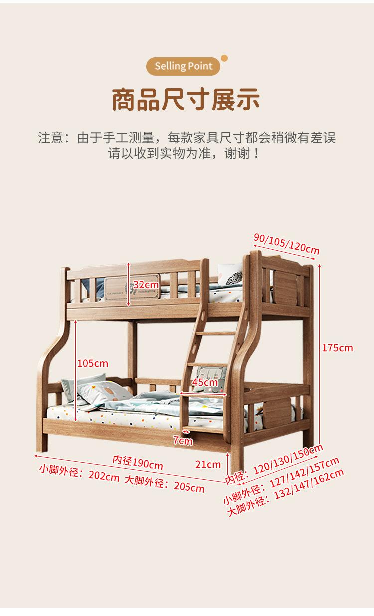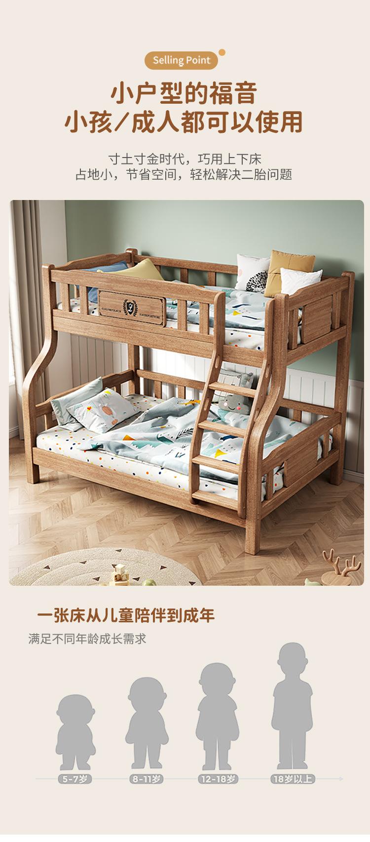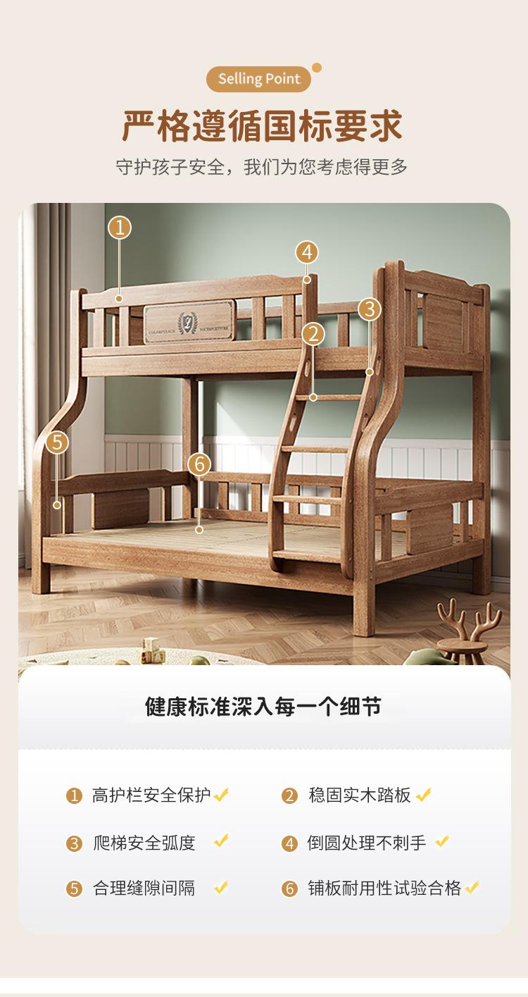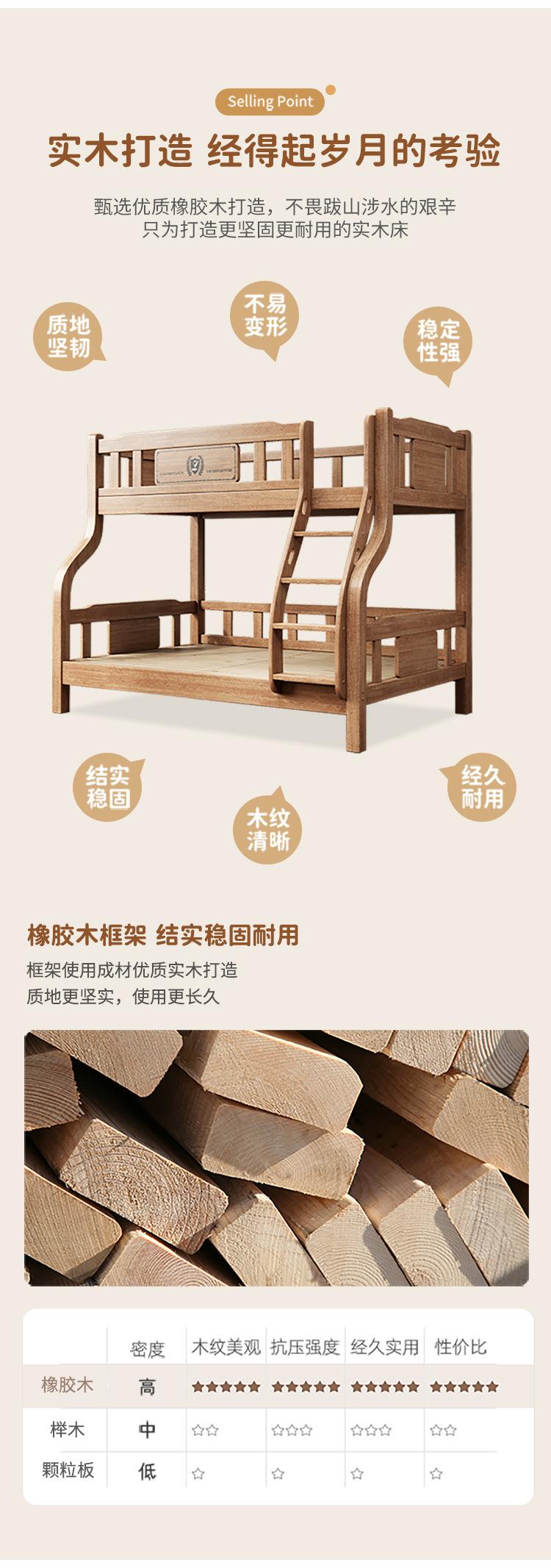 Beliche de cama infantil Cama alta e baixa Cama de dois andares Beliche completo de madeira maciça Cama de madeira de borracha multifuncional