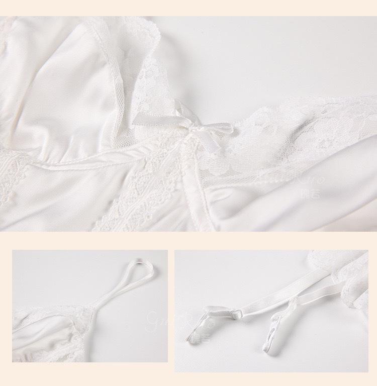 White, Black, White + white stockings, Black + black stockings, White + lace bow stockings