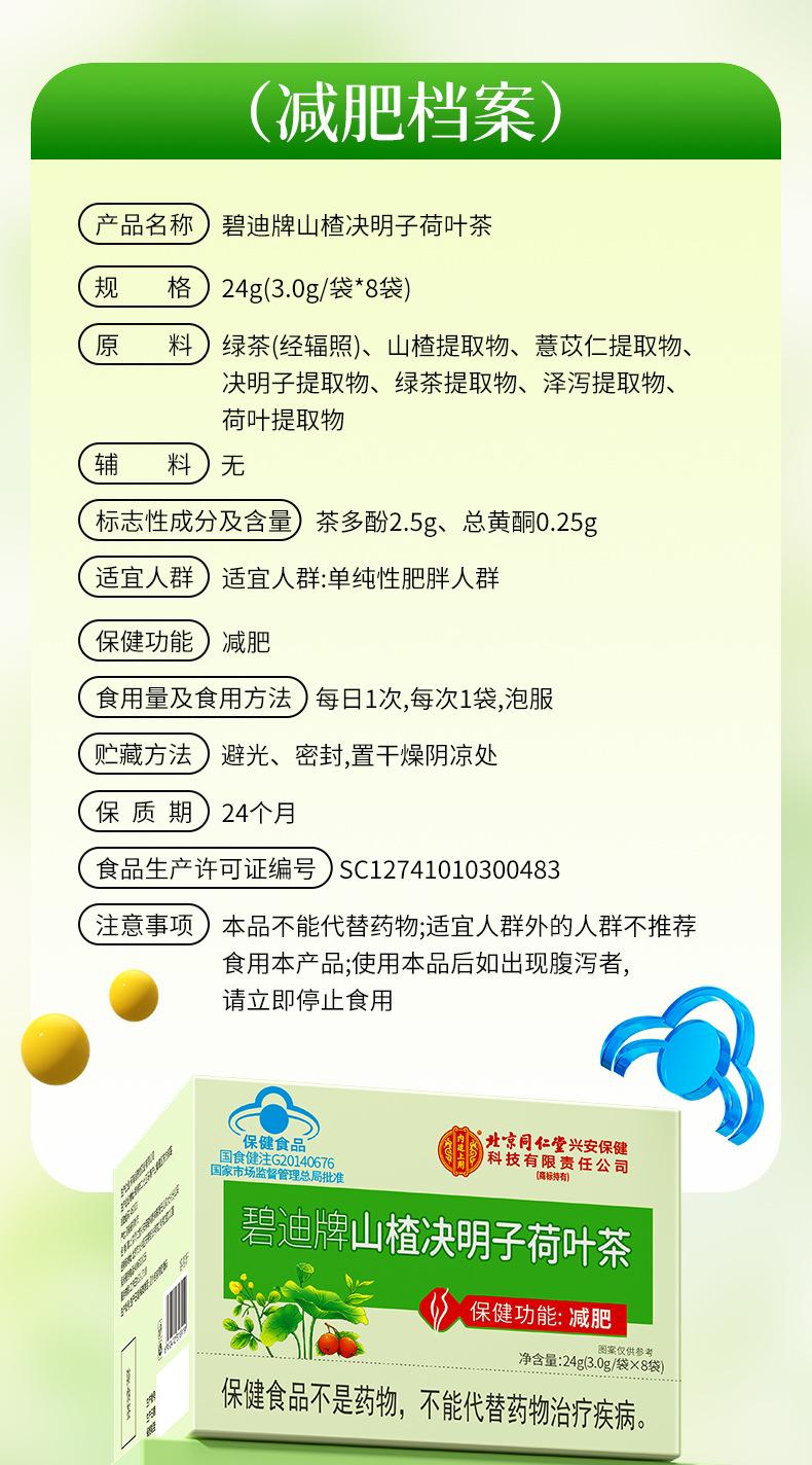 Beijing Tongrentang Bidi marca Hawthorn cassia semente folha de lótus chá homens e mulheres emagrecimento chá redutor de gordura emagrecimento chá comida saudável