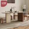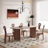 Mesa de jantar e cadeira de madeira maciça retrô francesa Combinação de casa nórdica pequeno apartamento Mesa de jantar redonda de placa de rocha Móveis antigos
