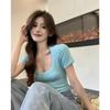 Nicho 2024 Verão Novo Cor Pura Gola Redonda Ajuste Slim Versátil Torcido Camiseta de Manga Curta para Mulheres