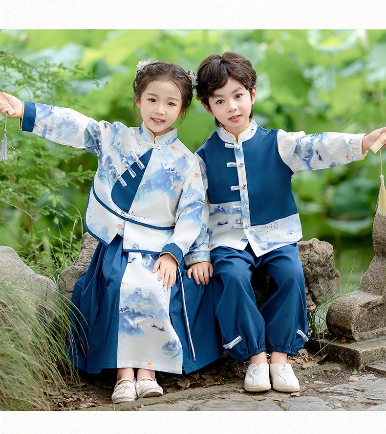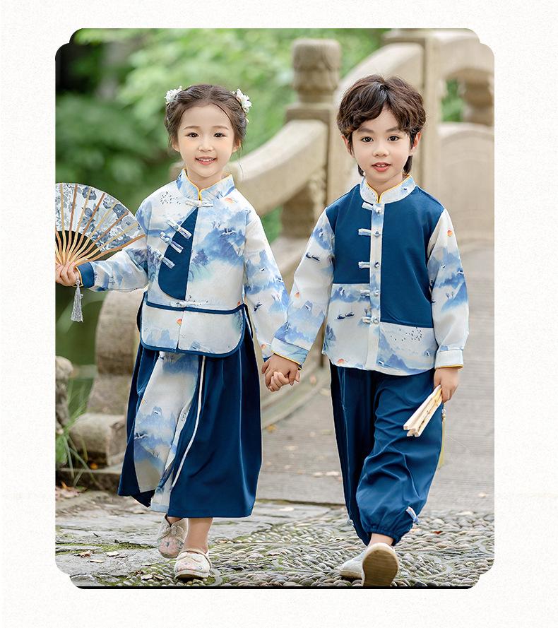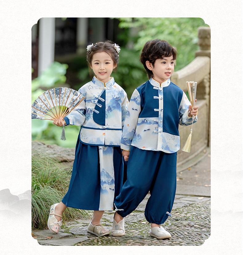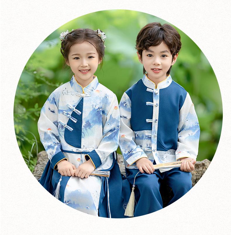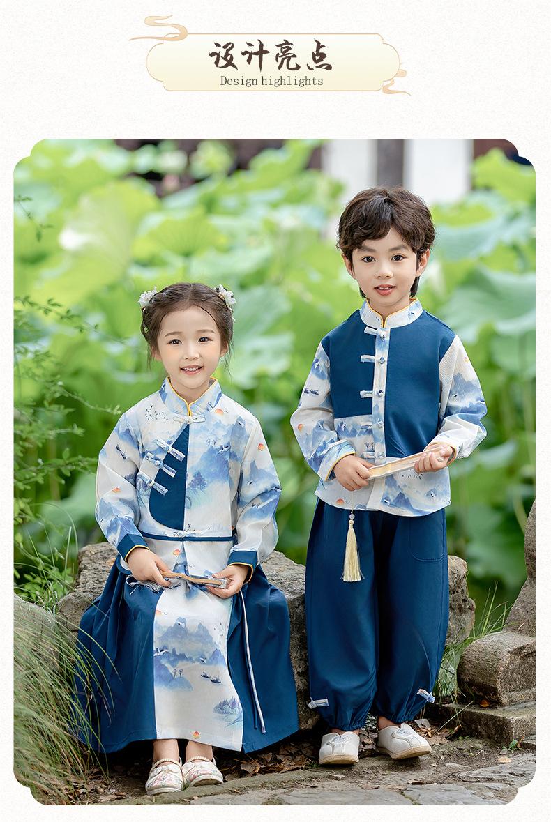 Hanfu Primavera e Outono Estilo Nacional Jardim de Infância Roupas de Jardim Tang Terno Novo Terno Antigo Chinês Estilo Étnico Recitação de Poesia Performance Roupas