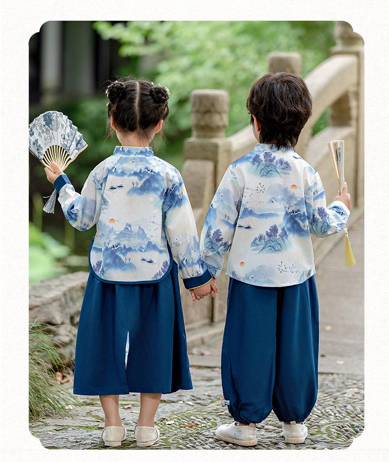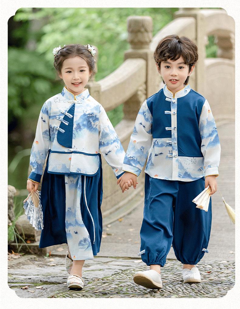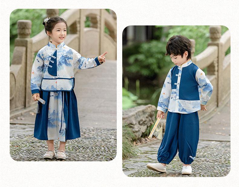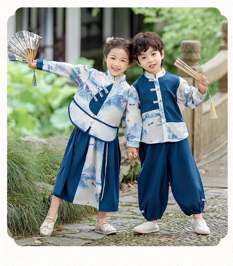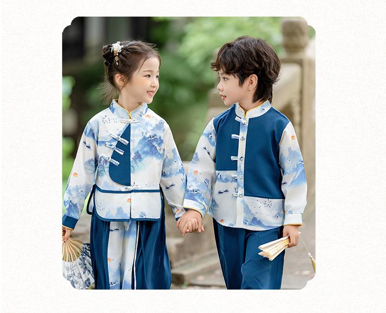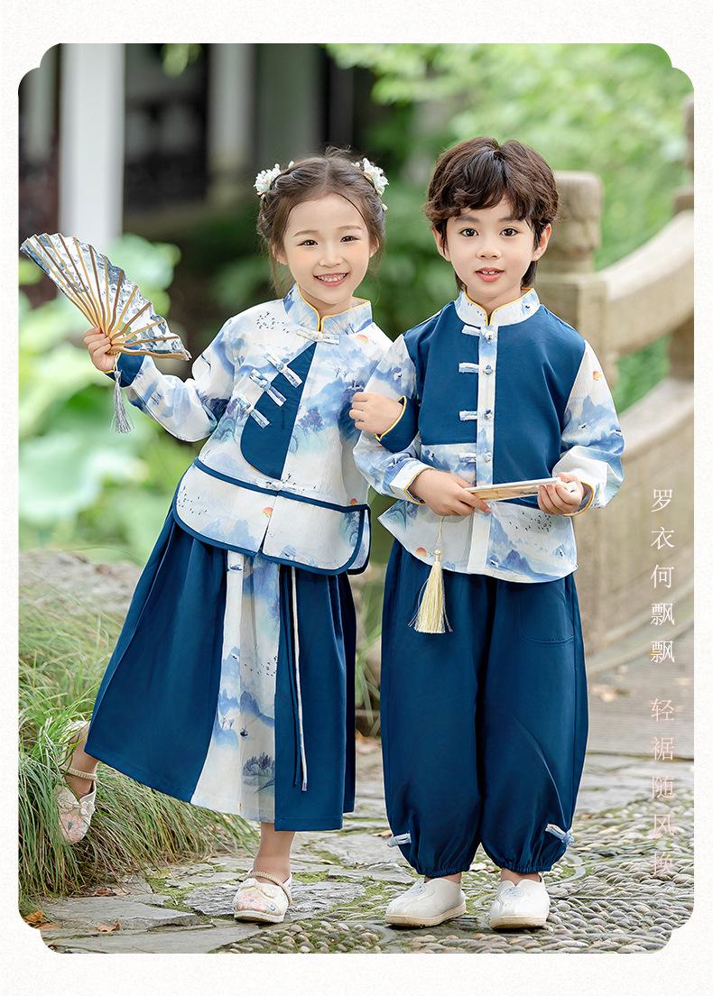Hanfu Primavera e Outono Estilo Nacional Jardim de Infância Roupas de Jardim Tang Terno Novo Terno Antigo Chinês Estilo Étnico Recitação de Poesia Performance Roupas