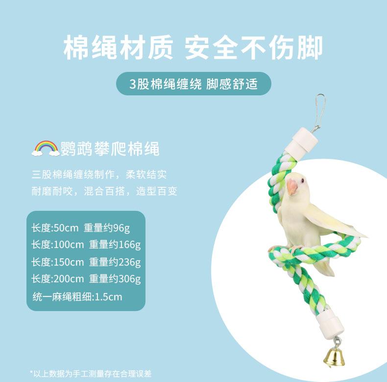 Suprimentos de papagaio Mordida Brinquedos Papagaio Corda de algodão Escada Rotativa Corda de algodão colorida Pássaro Escalando Corda de algodão Vara de pé Escada de escalada