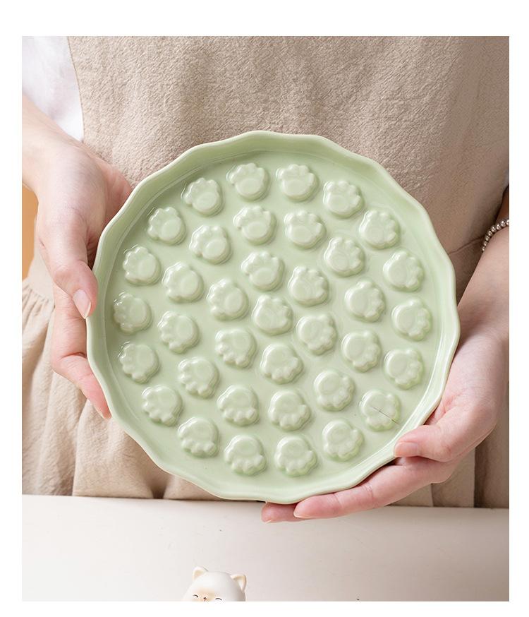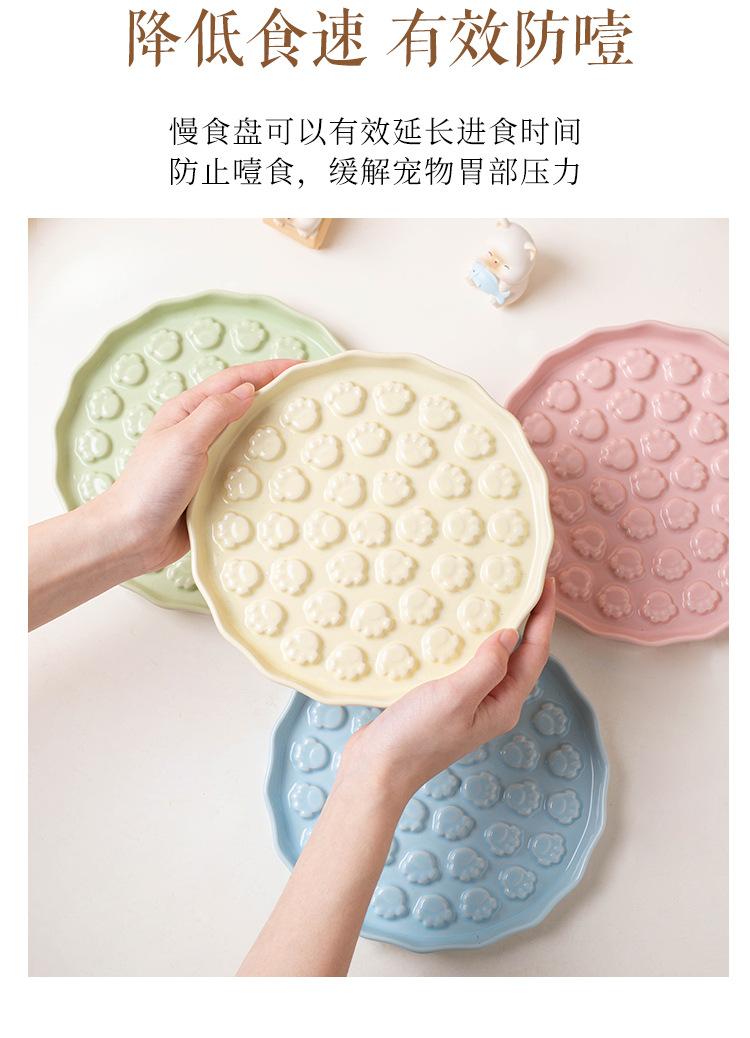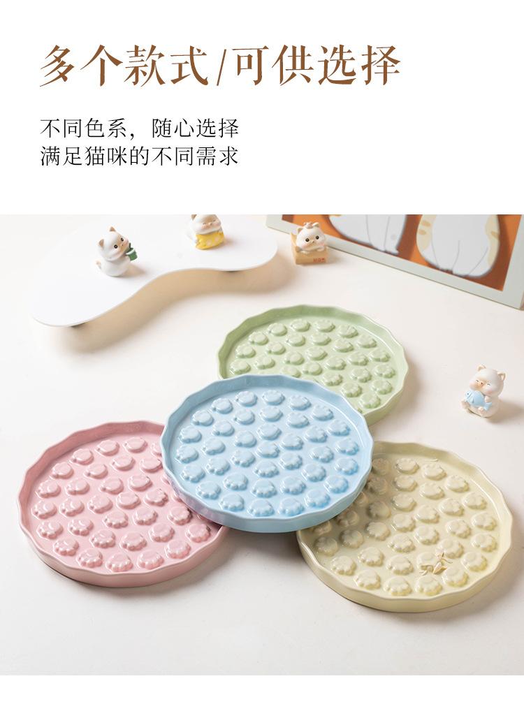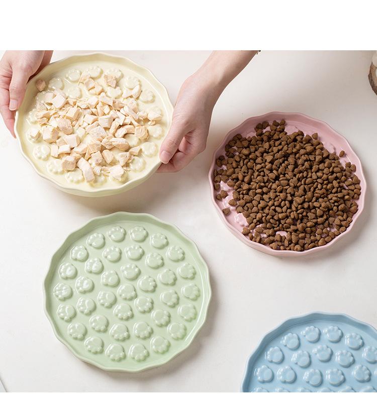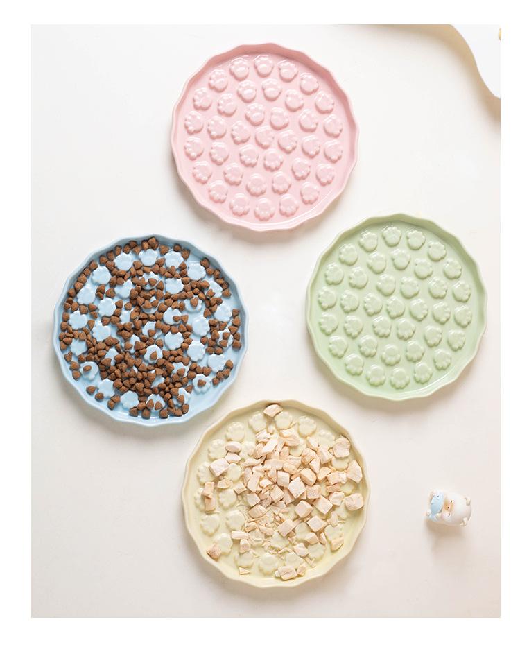 Paw print licking plate (pink), Paw print licking plate (blue), Paw print licking plate (green), Paw print licking plate (beige)