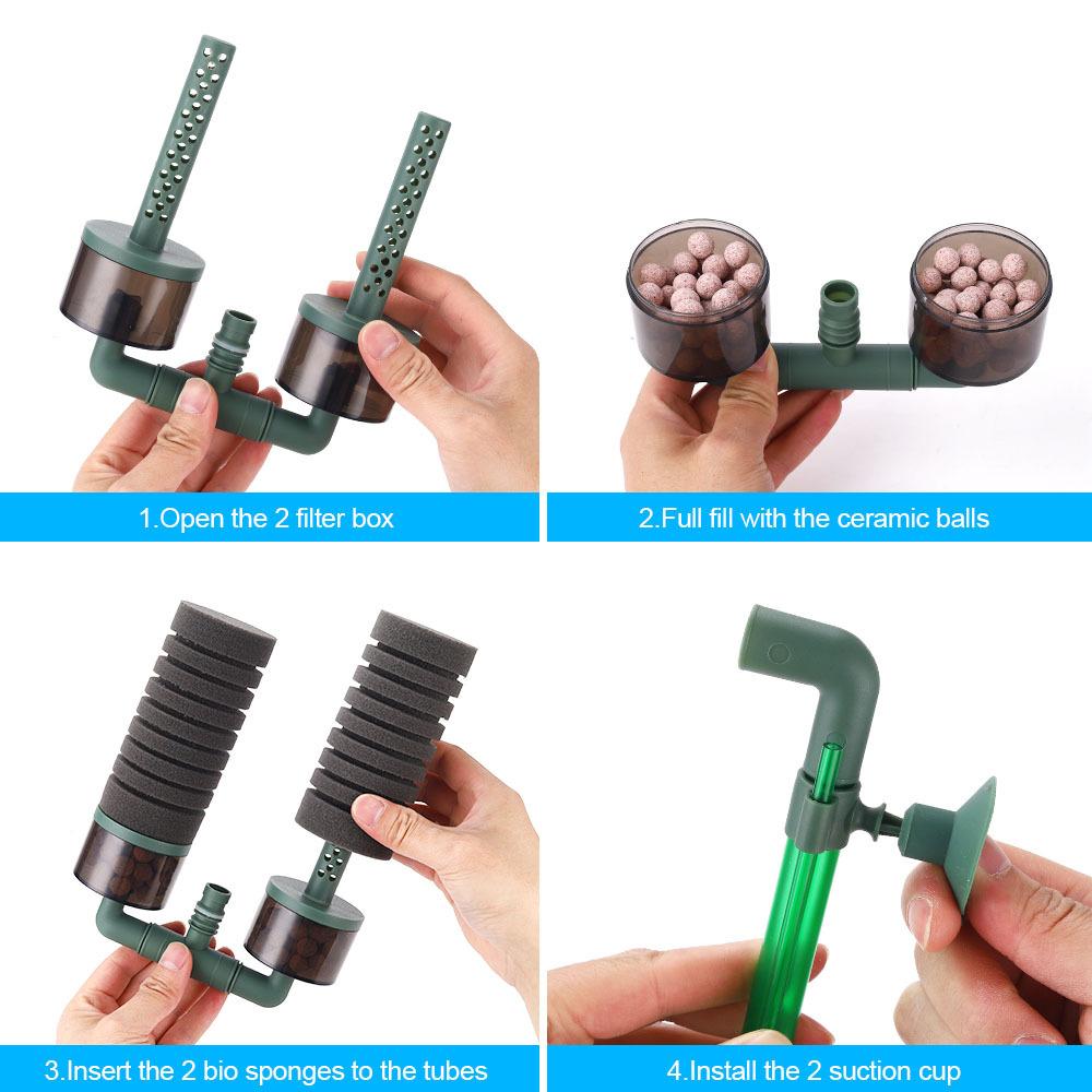 Filtro de aquário de fadas aquáticas algodão cabeça dupla filtro pneumático de aquário de fadas aquáticas cultura de bactérias esponja bioquímica