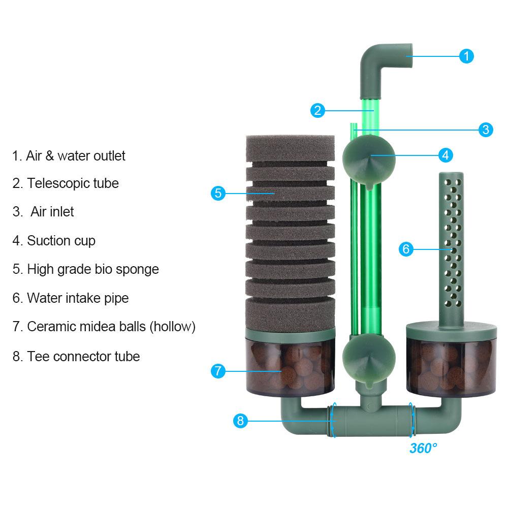 Conectar uma bomba de ar pode gerar um grande número de bolhas para aumentar a dissolução da água;Fácil de limpar;Nenhum ruído durante a operação;Este filtro de algodão é projetado e fabricado com base no princípio de multicamadas, tem a maior área de superfície e não apresenta nenhuma obstrução ao fluxo de água.
