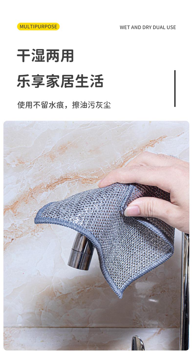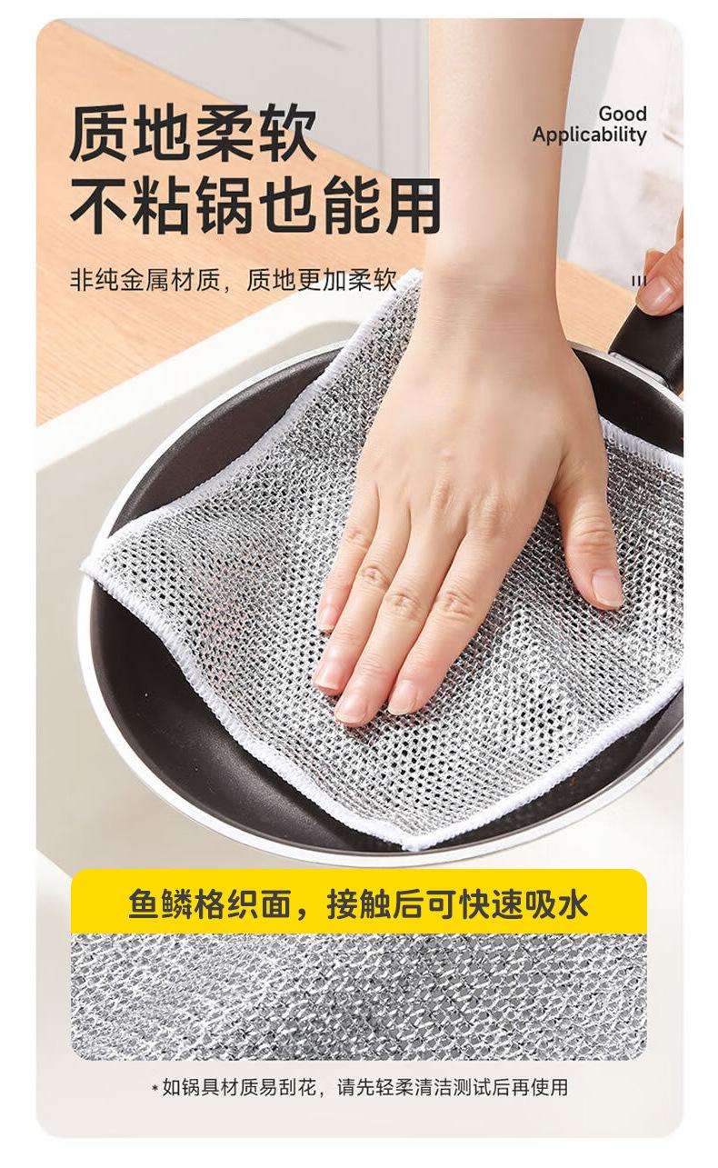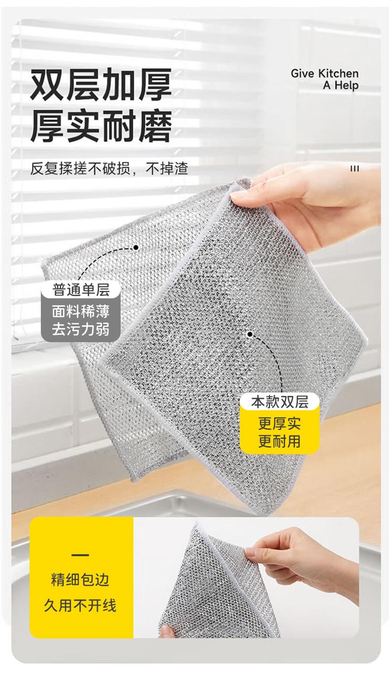 Pano de lavar louça de arame de aço, antiaderente, óleo, fogão, cozinha, limpeza, panela e tigela, descontaminação, esfregão, dupla camada, espesso, fio de prata, pano