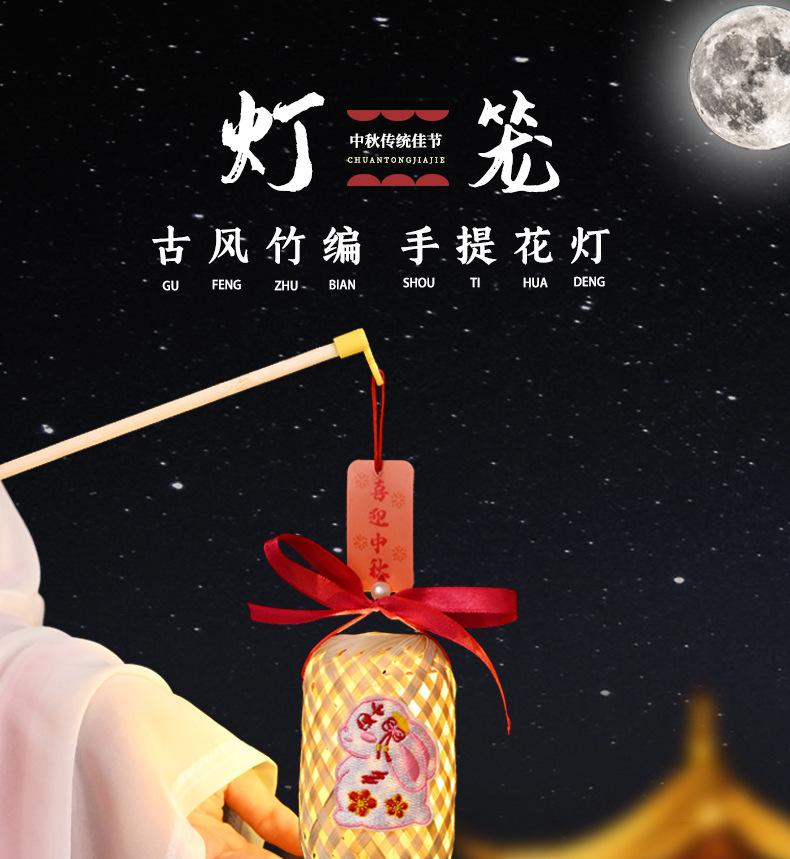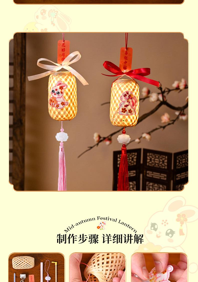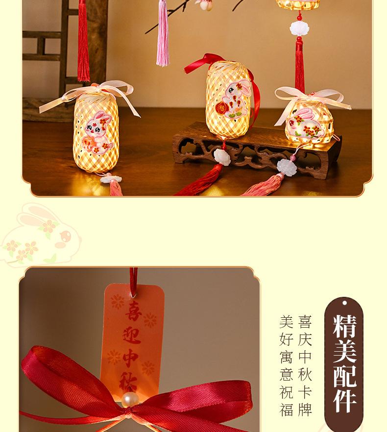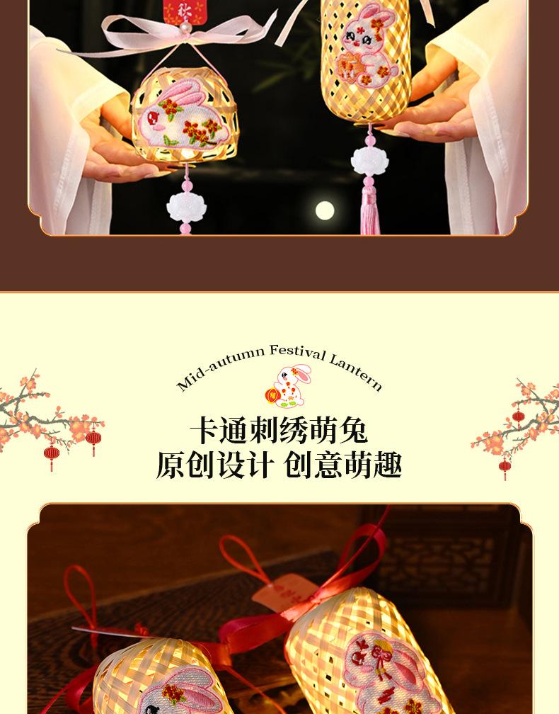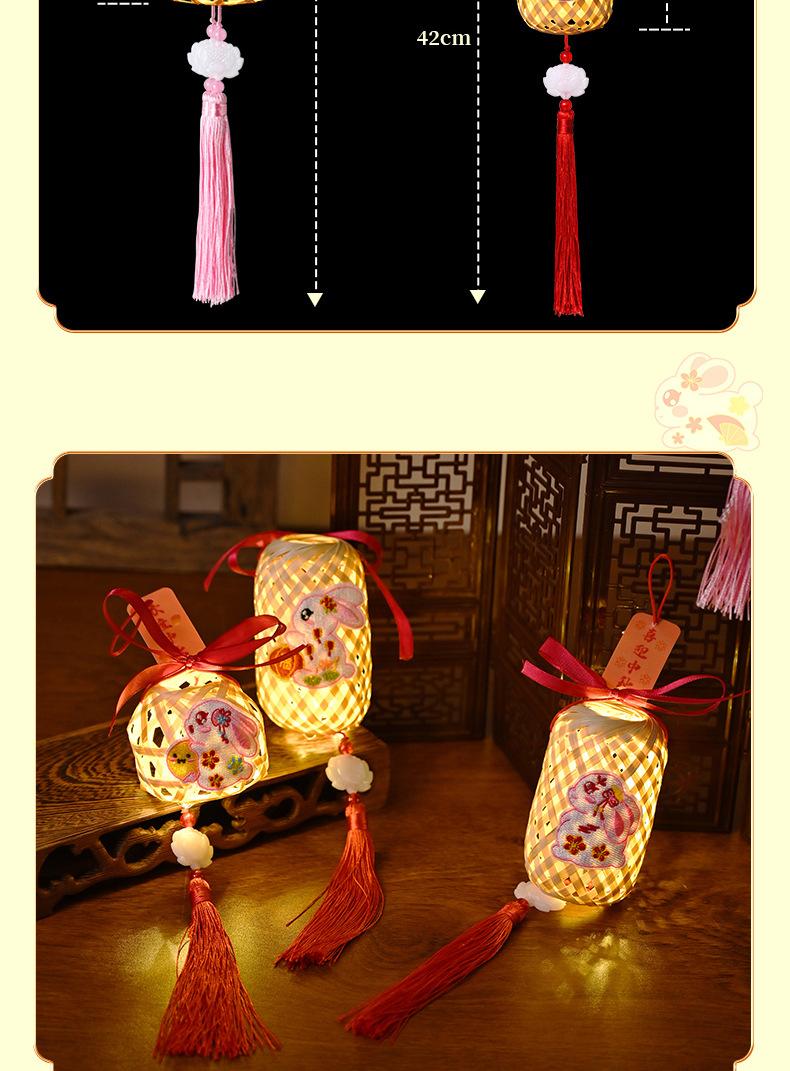 Lanterna do Festival do Meio Outono Jade Coelho Bambu Lanterna Luminosa Material Artesanal Infantil Lâmpada Portátil Coelho Bordado Lanterna Pequena Antiga
