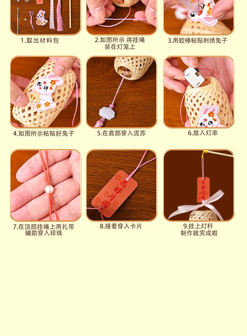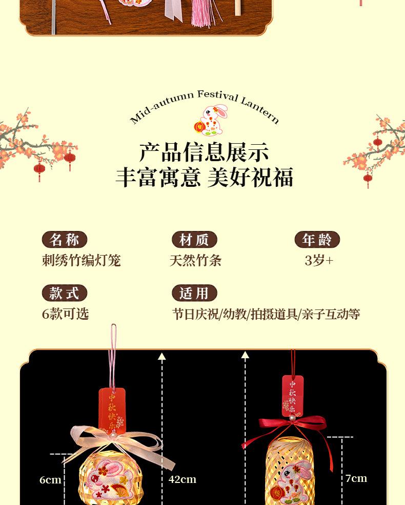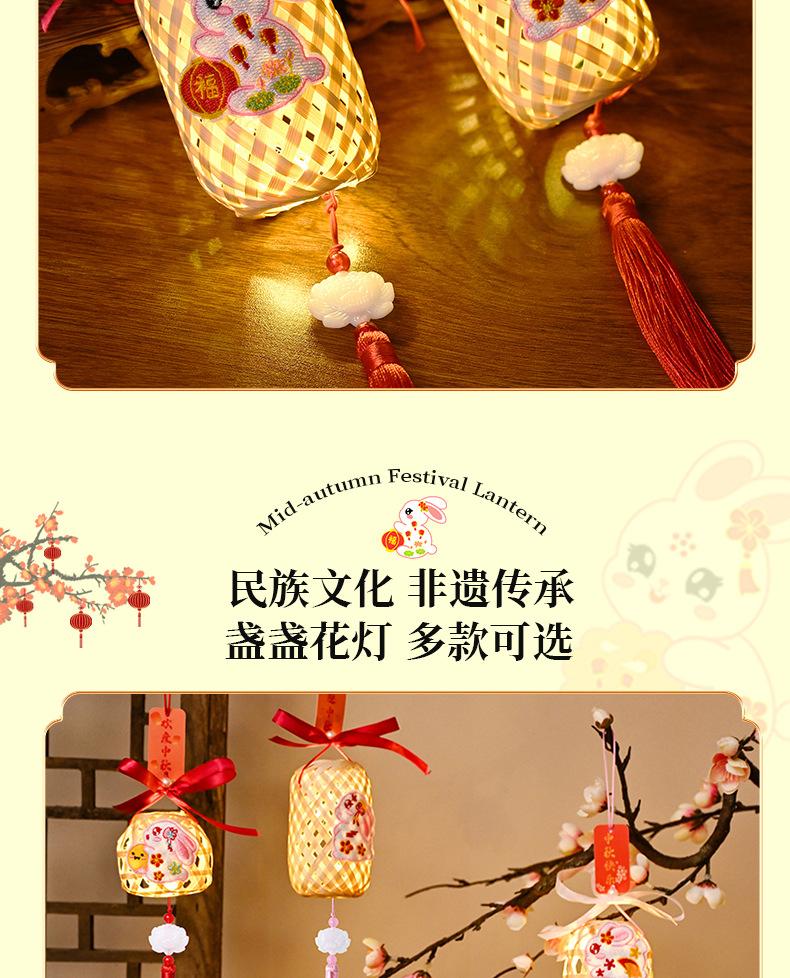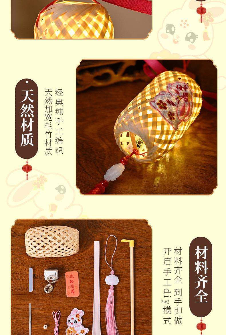 Lanterna do Festival do Meio Outono Jade Coelho Bambu Lanterna Luminosa Material Artesanal Infantil Lâmpada Portátil Coelho Bordado Lanterna Pequena Antiga