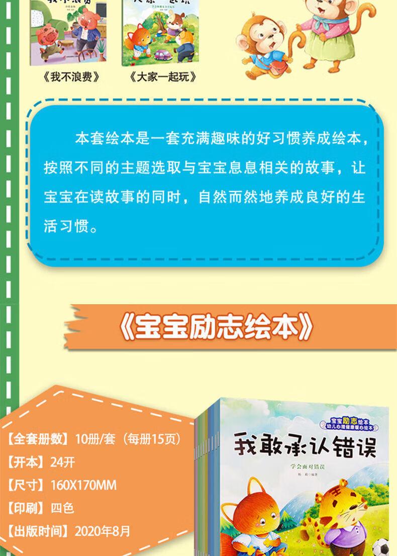 Bons hábitos para bebês para desenvolver a saúde mental das crianças Livro ilustrado de coração quente Iluminação Educação infantil Todos os 10 livros