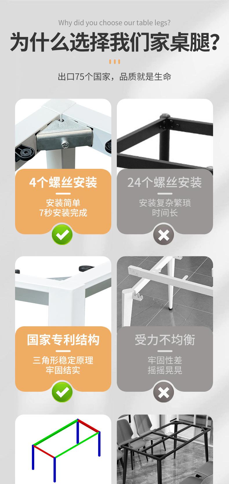 Compre Acessórios para mesa de móveis, pernas de mesa de ferro em tubo quadrado de 45 polegadas, pernas de mesa de jantar modernas e minimalistas no atacado no Joom.pro