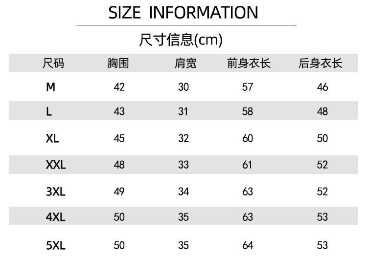 M, L, XL, XXL, XXXL, 4XL, 5XL