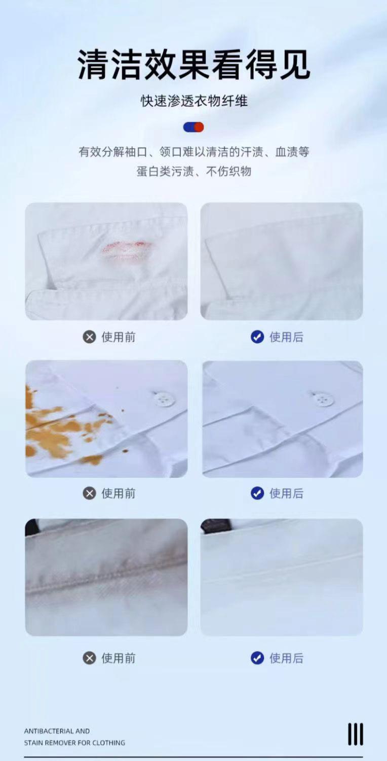 A mesma roupa removedor de manchas penetrante artefato roupa branca atividade de remoção de manchas amarelas esterilização enzimática biológica limpa