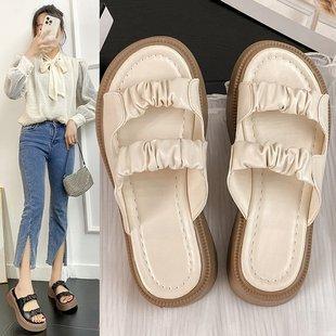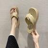 Chinelos estilo coreano femininos 2022 nova roupa de verão sandálias plataforma cunha bico grosso sandálias francesas