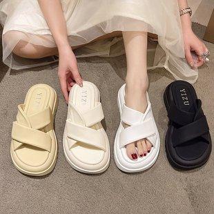 Sandálias de sola grossa com tiras cruzadas para mulheres, sapatos de plataforma para mulheres, verão 2023, novos sapatos de praia estilo universitário para mulheres