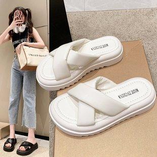 Versão coreana de chinelos casuais para mulheres, roupas de verão ao ar livre, 2023, sandálias de tira cruzada de fundo macio de celebridades da Internet, estilo fada, chinelos de praia