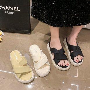 2023 verão novas sandálias de sola grossa plataforma para mulheres em sandálias de praia coreanas da moda para mulheres chinelos casuais