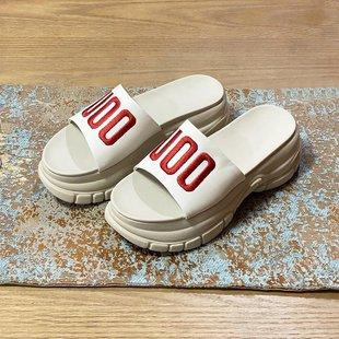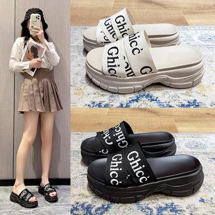 Chinelos para mulheres usarem ao ar livre 2023 verão novo estilo letras da moda rede celebridade sandálias de sola grossa salto plataforma chinelos de praia