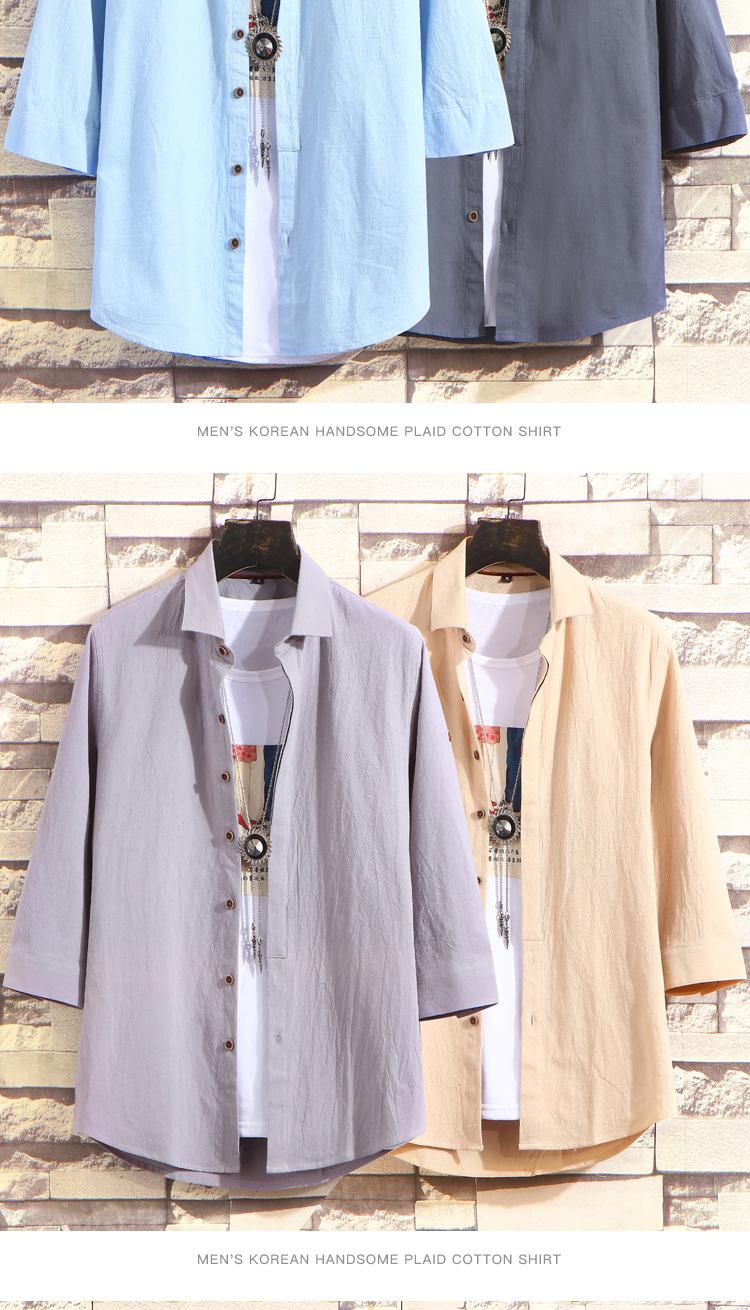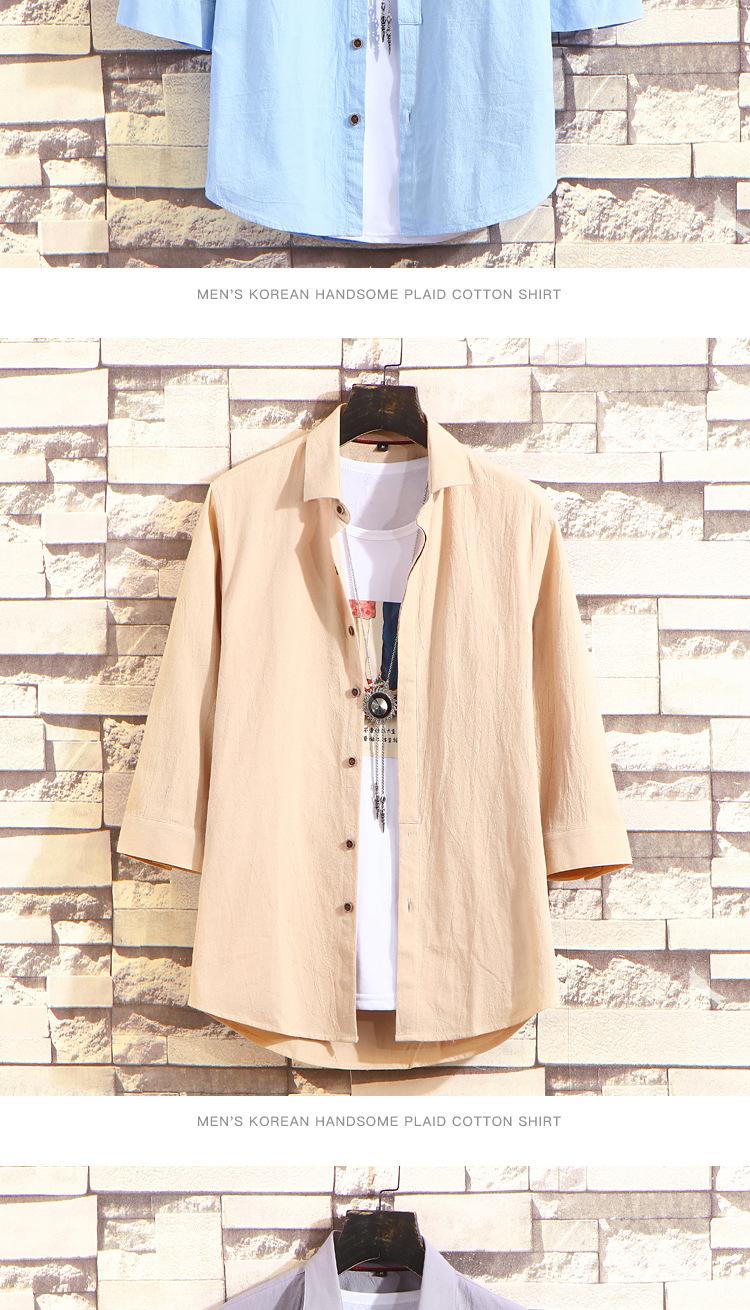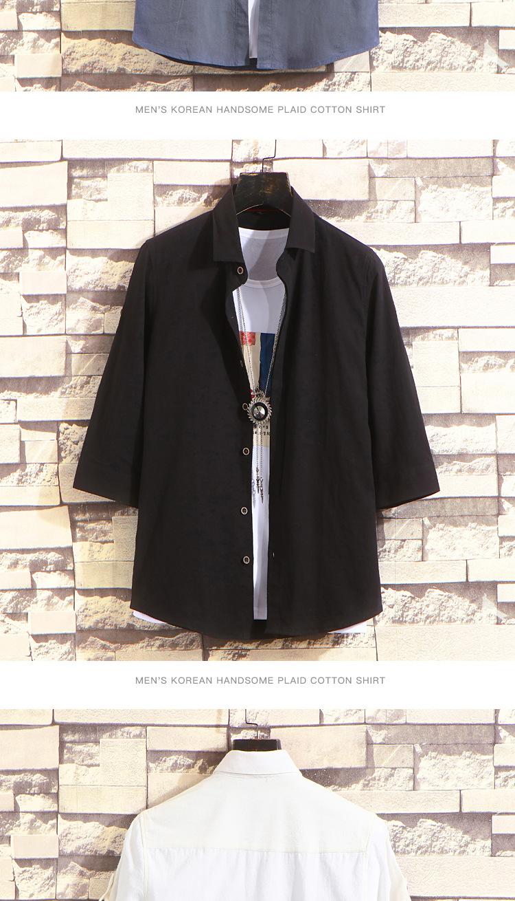 Compre 24 verão novo masculino coreano- camisa de estilo bonito slim-fit camisa de lapela plus size cor sólida casual manga de três quartos top no atacado no Joom.pro