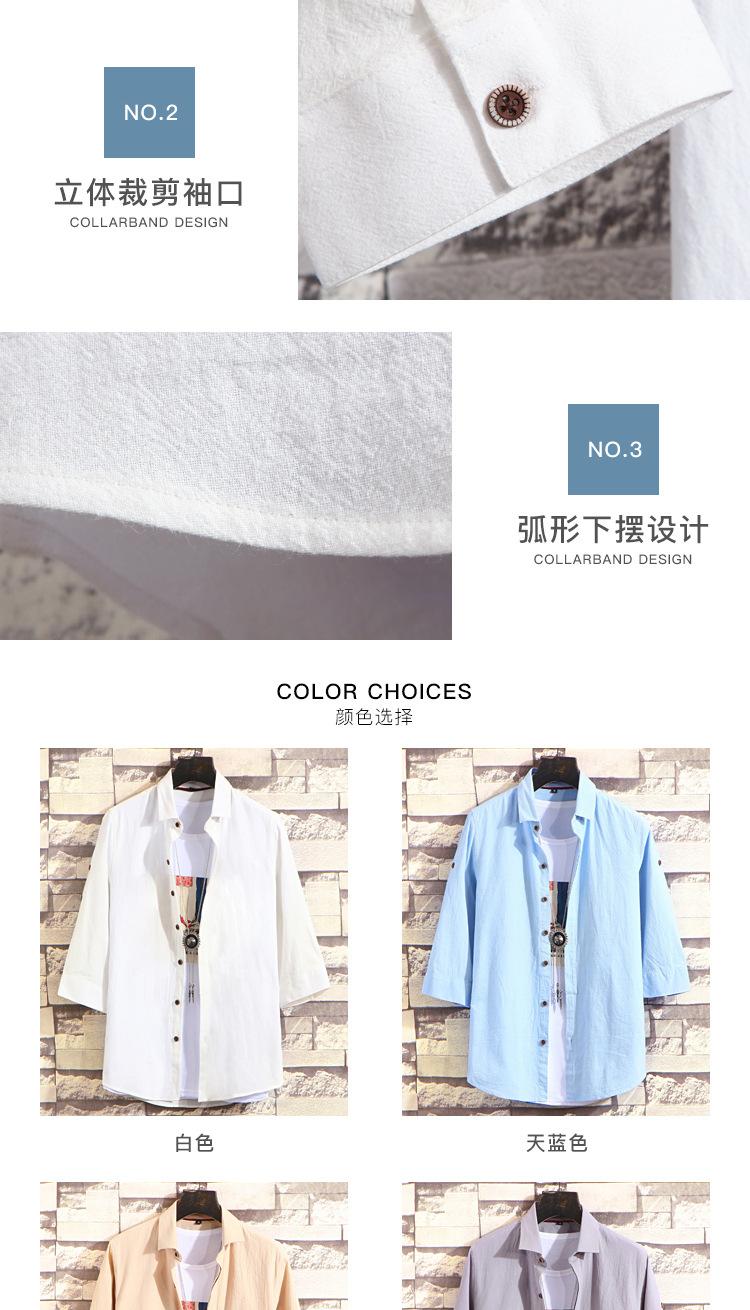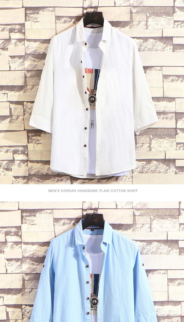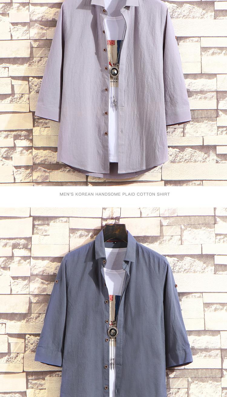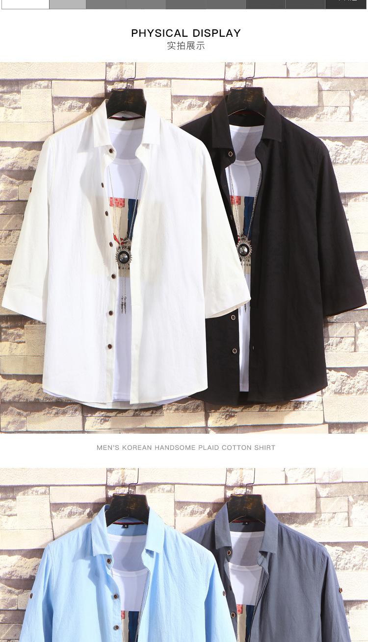 Compre 24 verão novo masculino coreano- camisa de estilo bonito slim-fit camisa de lapela plus size cor sólida casual manga de três quartos top no atacado no Joom.pro