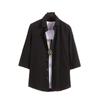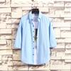 24 verão novo masculino coreano- camisa de estilo bonito slim-fit camisa de lapela plus size cor sólida casual manga de três quartos top
