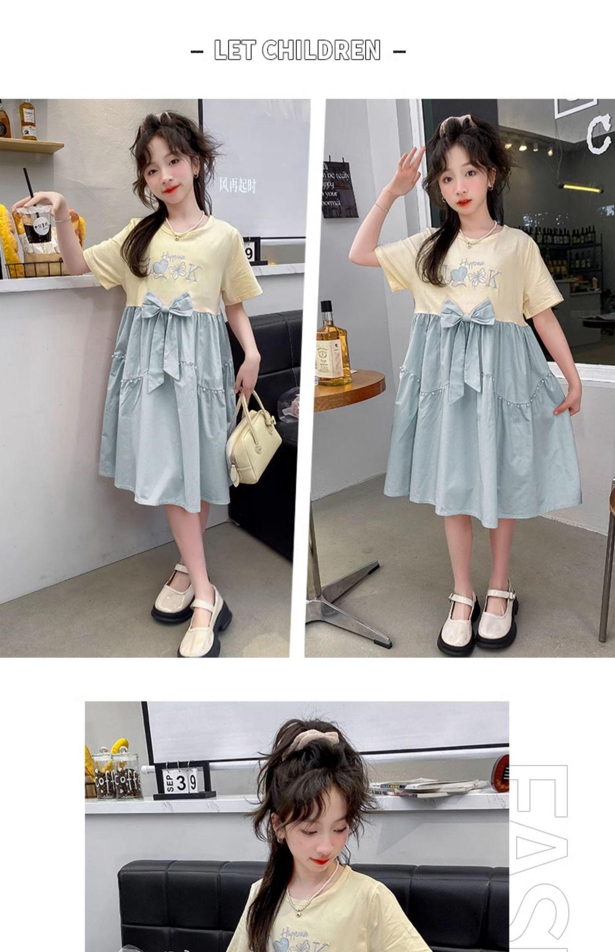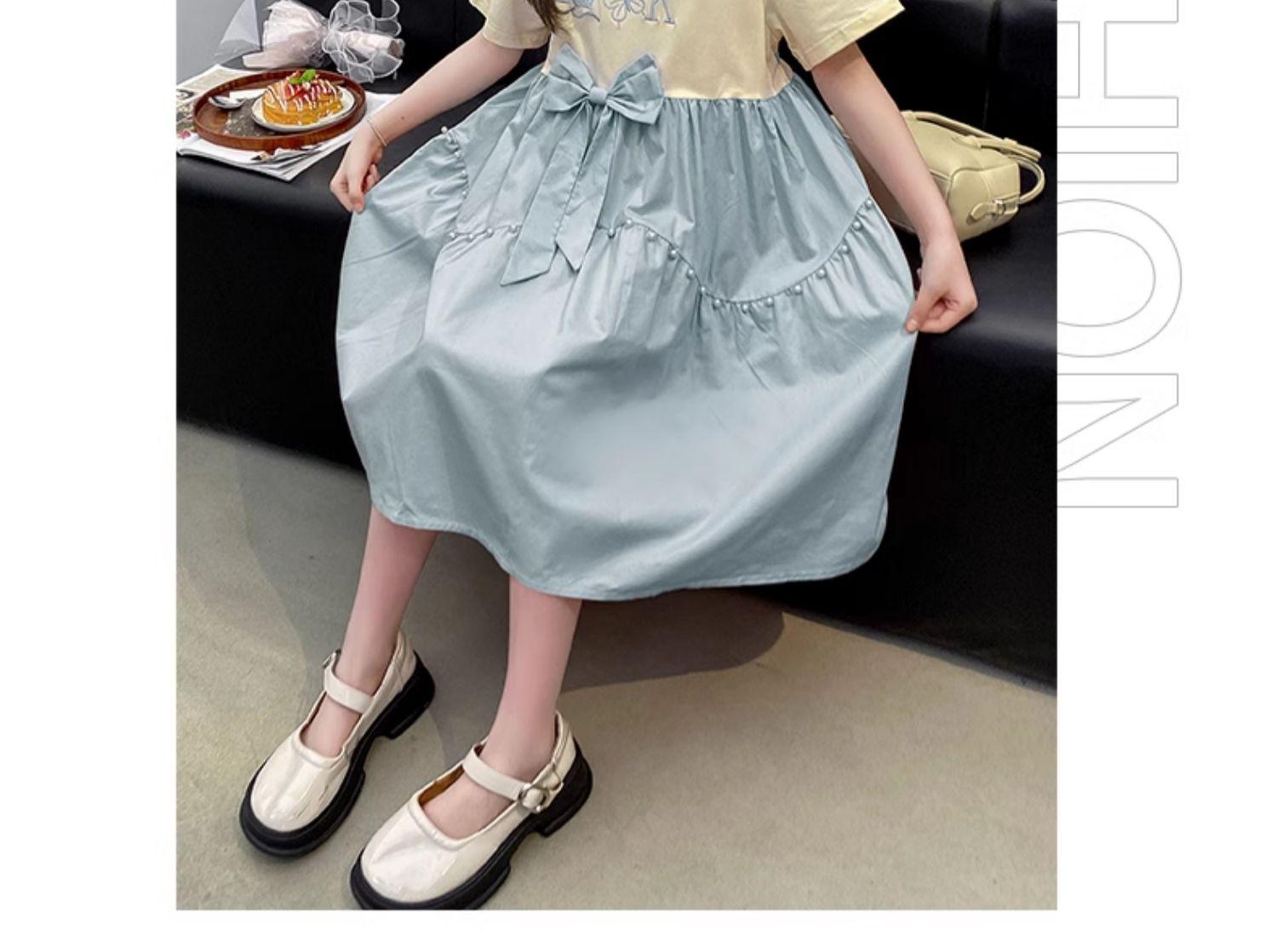 Vestido das meninas Verão Novo Estilo Vestido de Verão das Meninas Grandes Saia Doce das Crianças Saia Princesa de Verão dos Alunos da Escola Primária