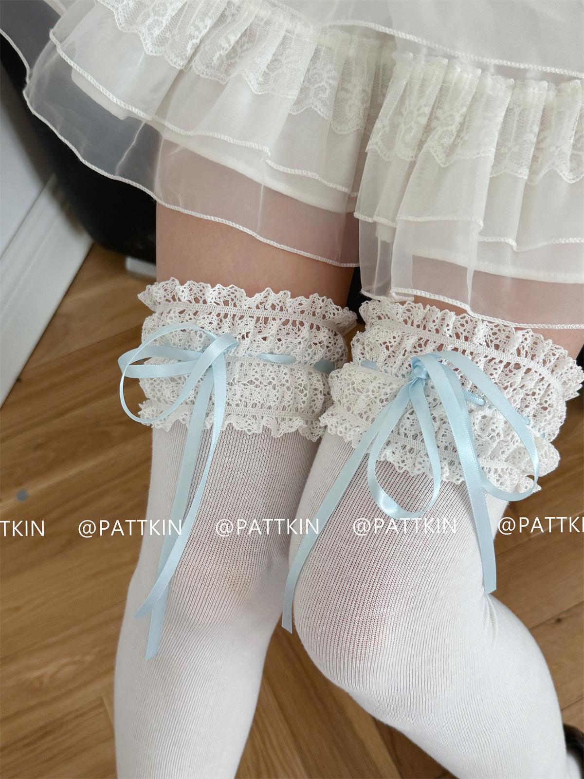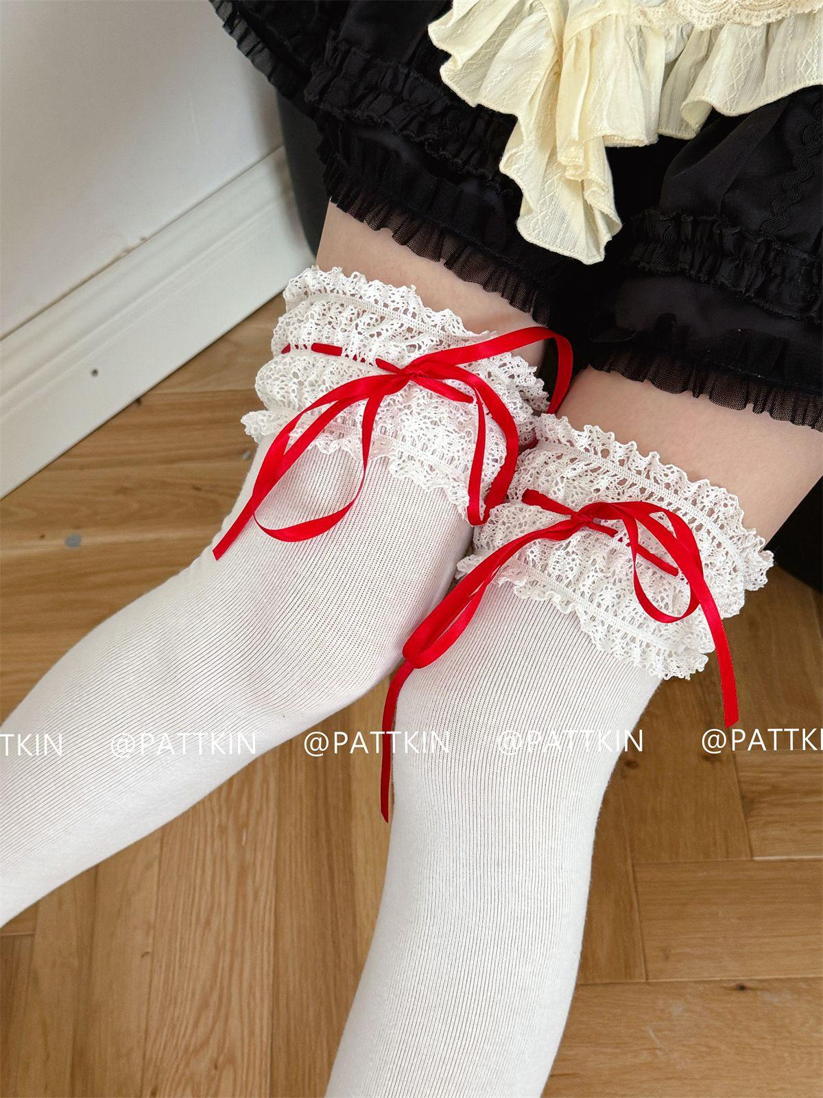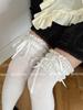 Novo Outono JK Lace Lace Coxa Meias de Algodão Lolita Girl High Tube Meias Femininas Sobre o Joelho Meias Sweet Bow