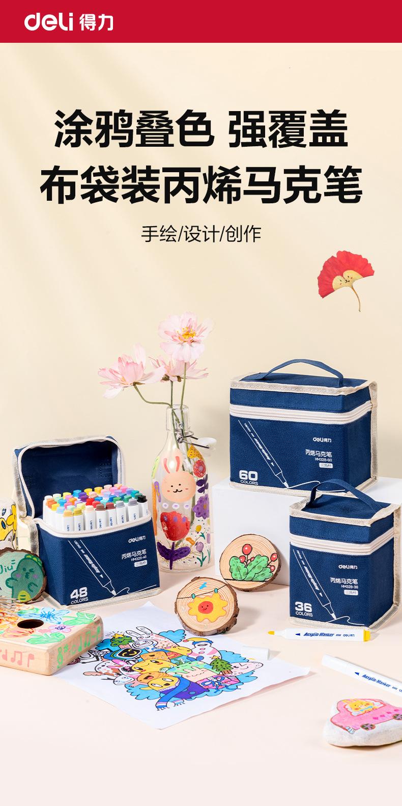 Deli acrílico marcador caneta cor opaca cor empilhável 60 cores estudante arte pintura pincel caneta aquarela caneta de cor infantil