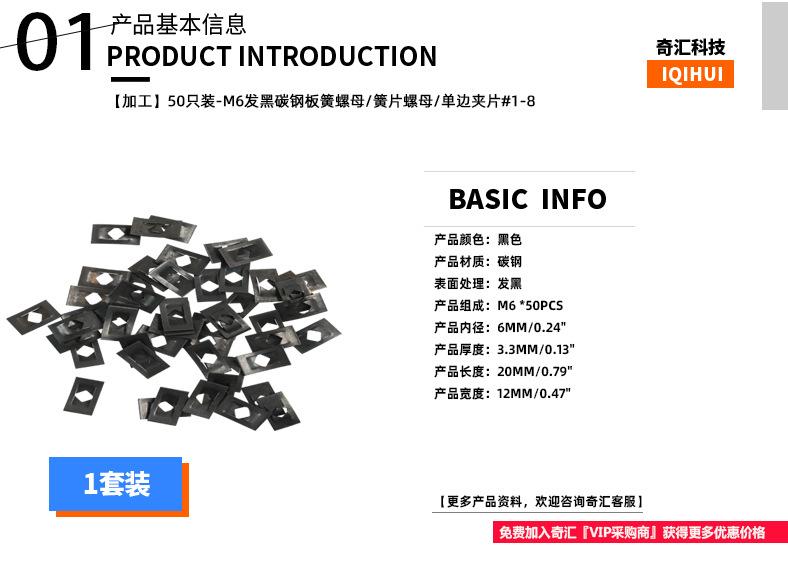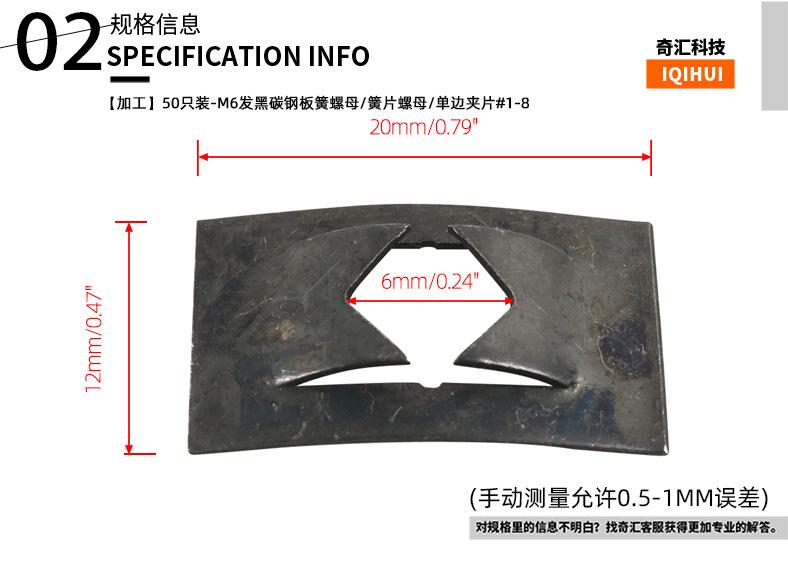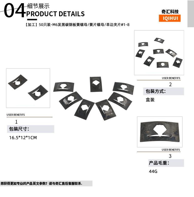 Fábrica em estoque M6 porca de mola de lâmina de aço carbono preto 50 porca de palheta único clipe lateral fixadores de hardware transfronteiriço