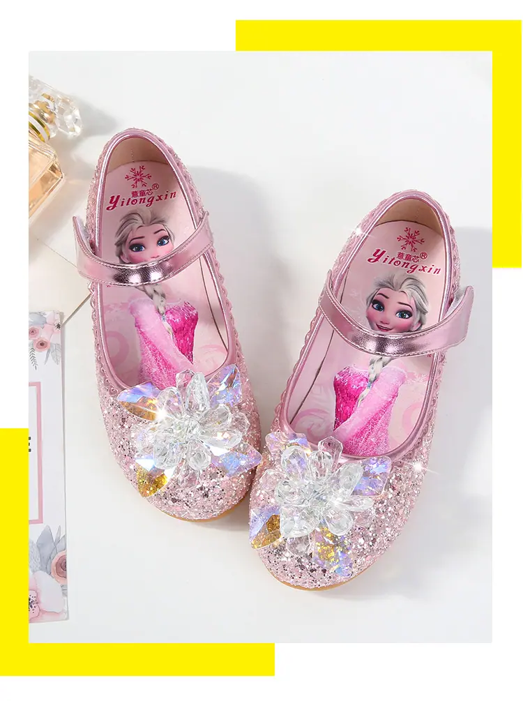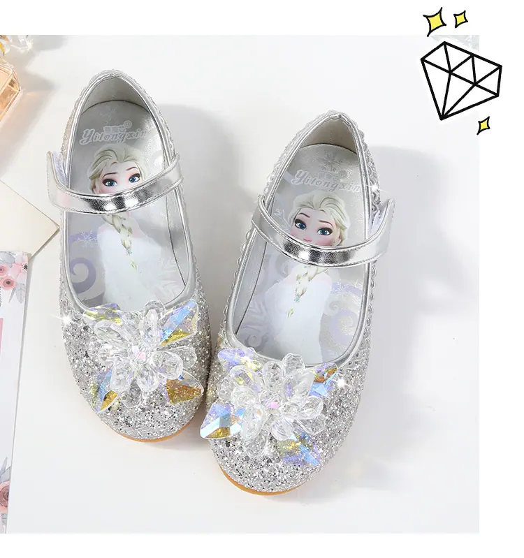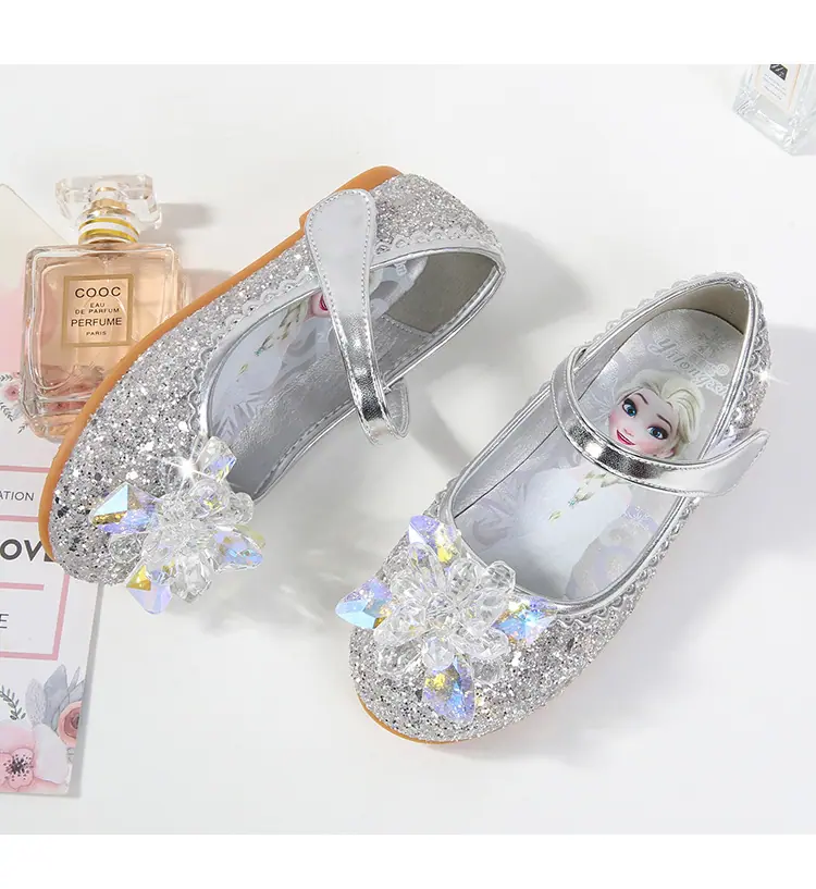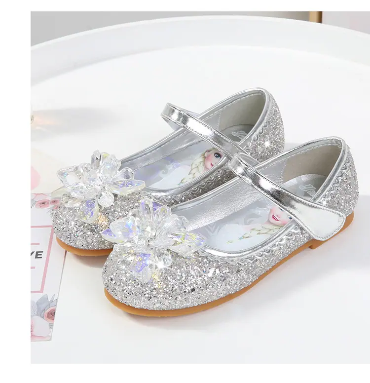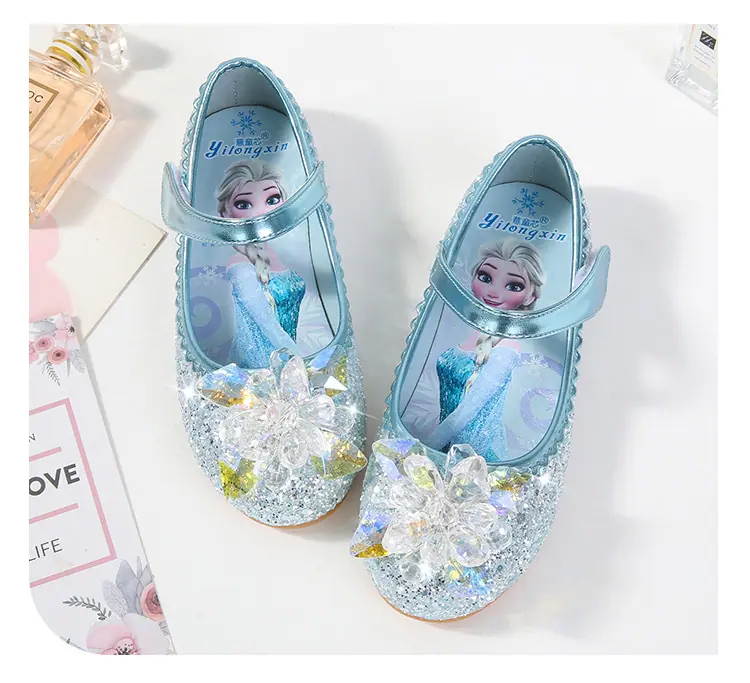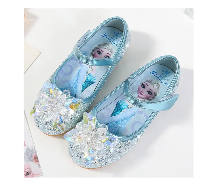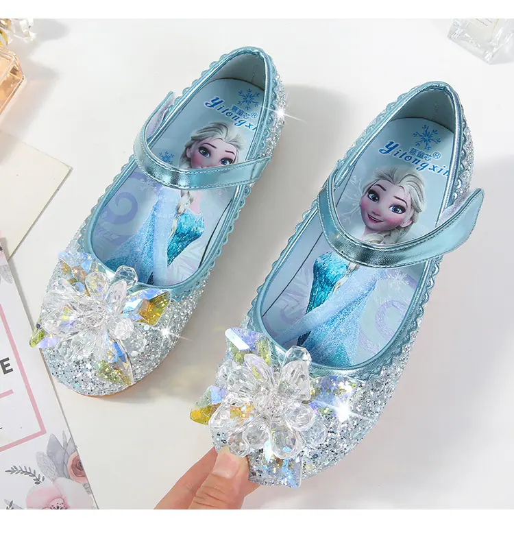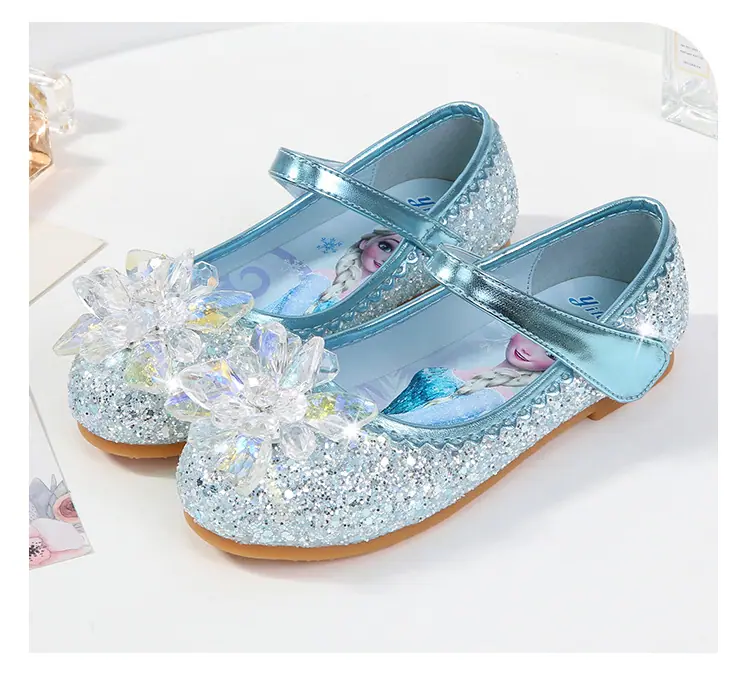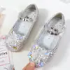 Sapatos de Cristal para Meninas 2026 Nova Coleção Primavera e Outono Sapatos Infantis Sapatos de Princesa para Menininhas Sapatos de Couro Azuis Brilhantes para Bebês