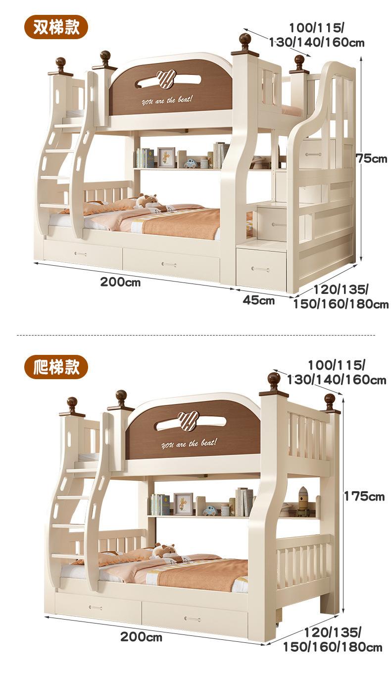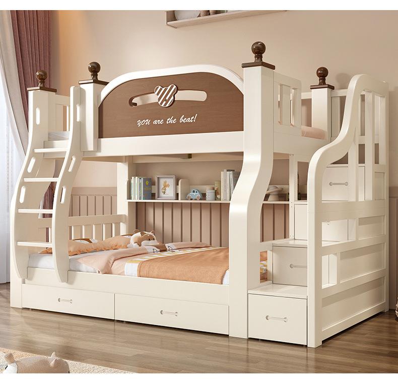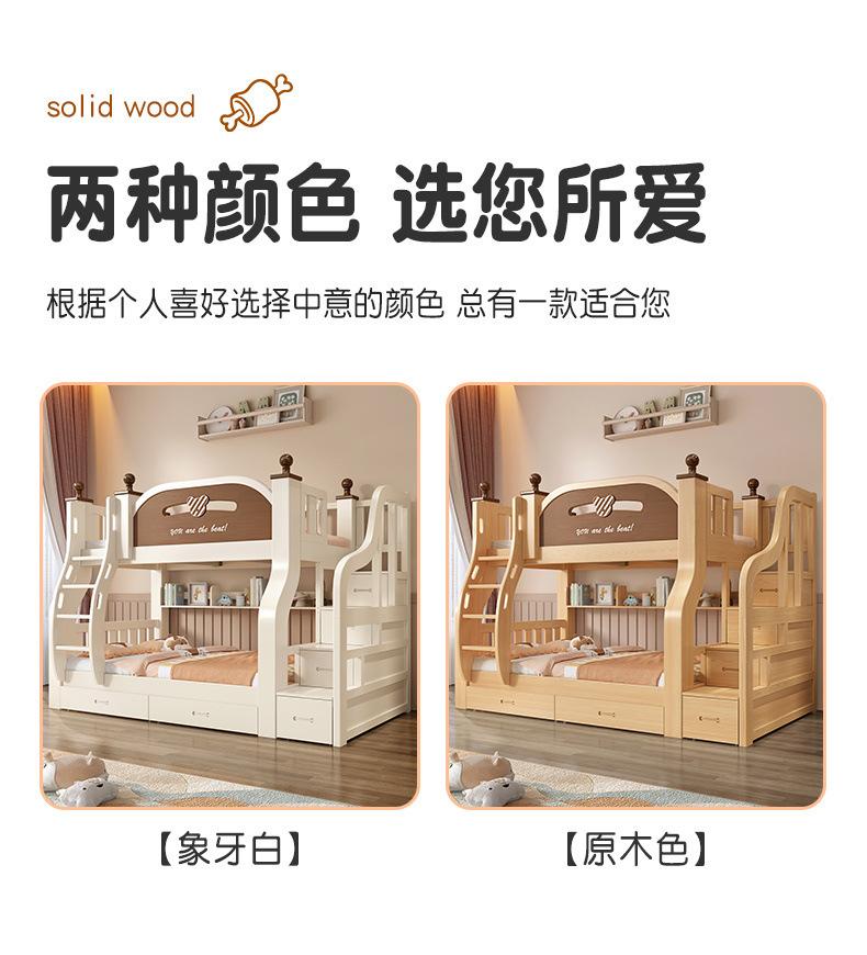 Beliche de madeira maciça Beliche Cama de apartamento pequeno Prateleira de casal Cama de madeira de duas camadas Cama de criança alta e baixa