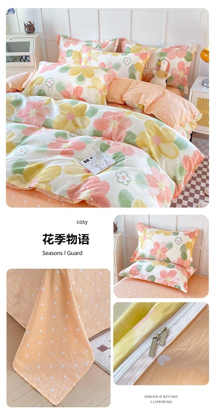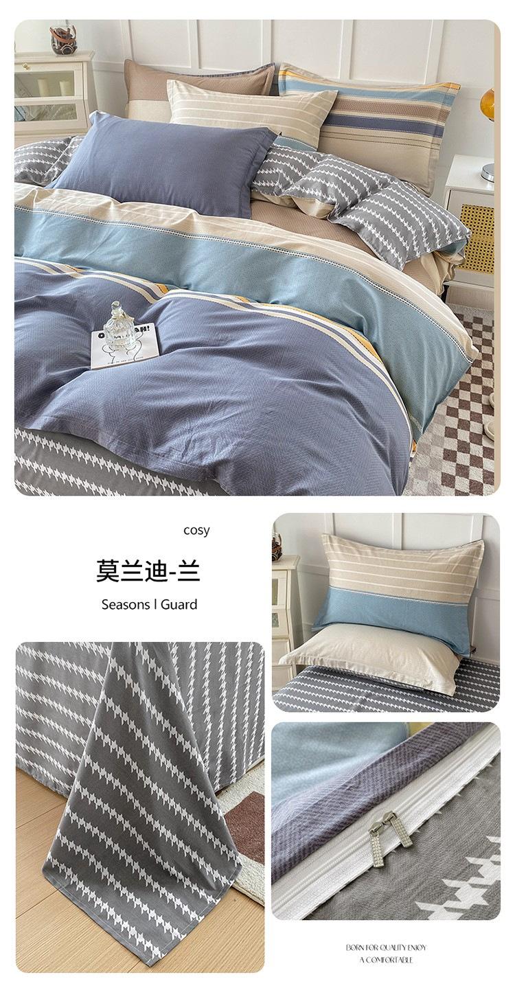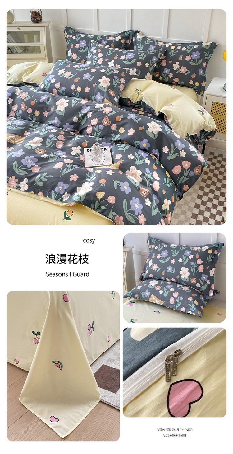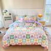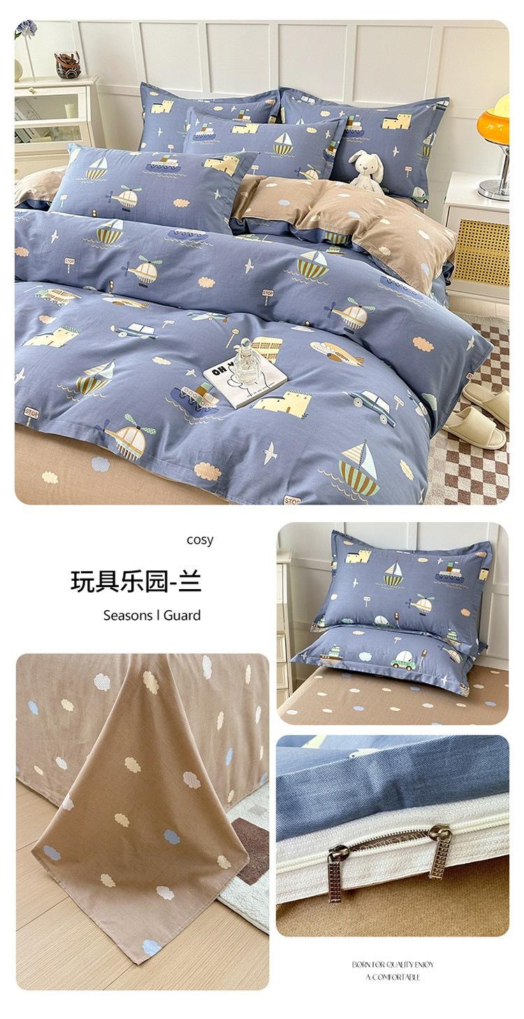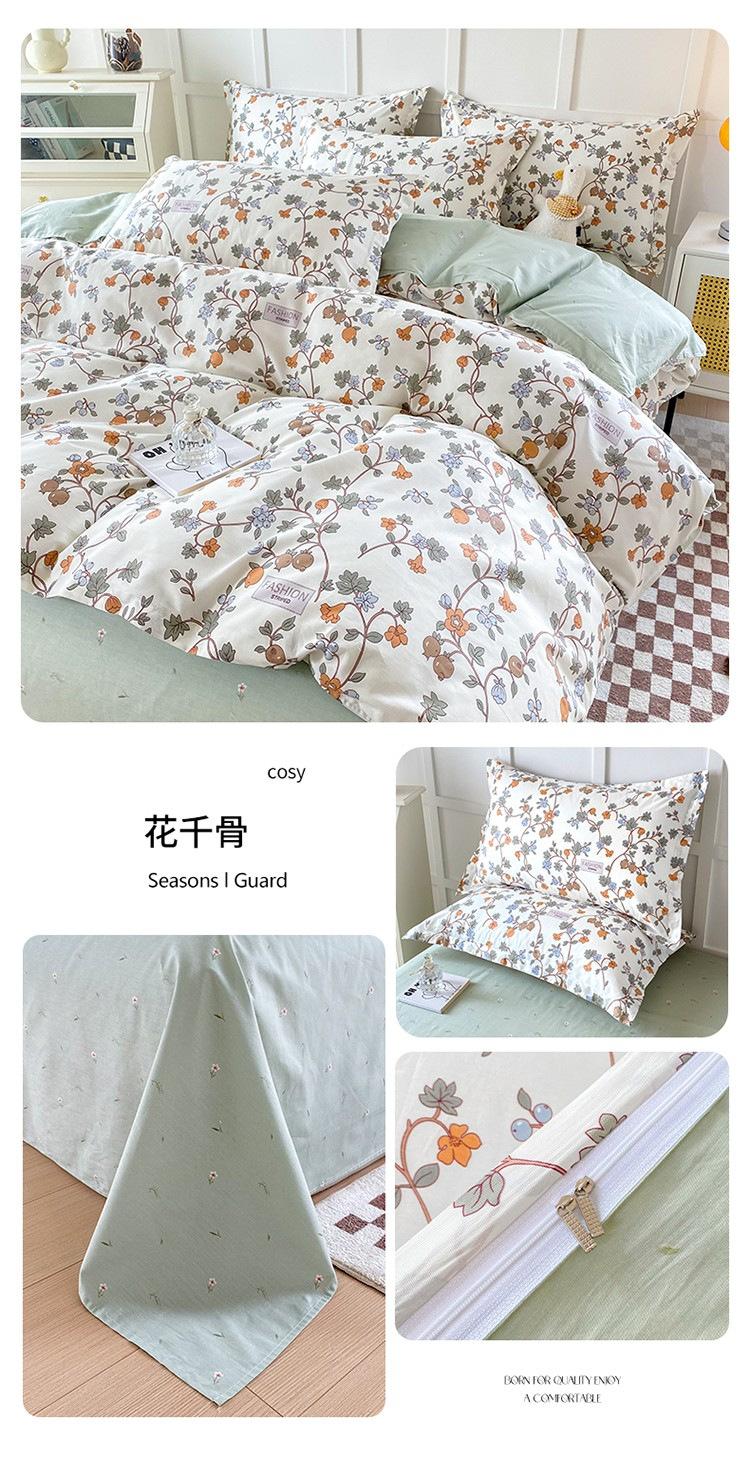 Conjunto de quatro peças de algodão puro com estampa fresca Lençol doméstico para duas pessoas Capa de colcha Dormitório estudantil Conjunto de três peças de algodão puro único