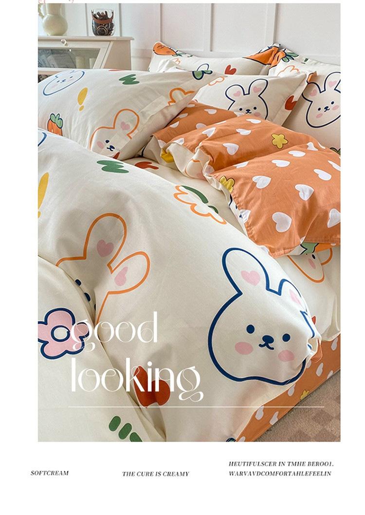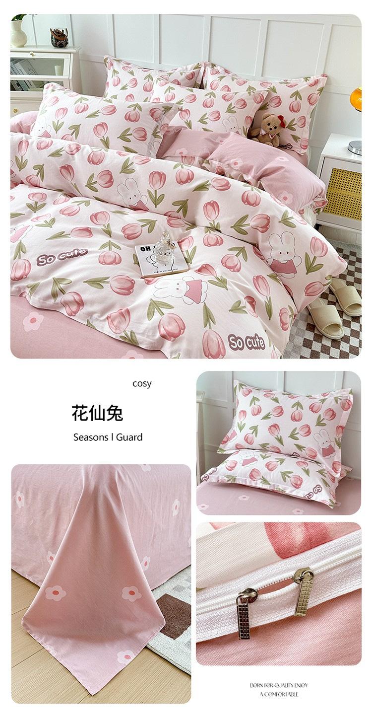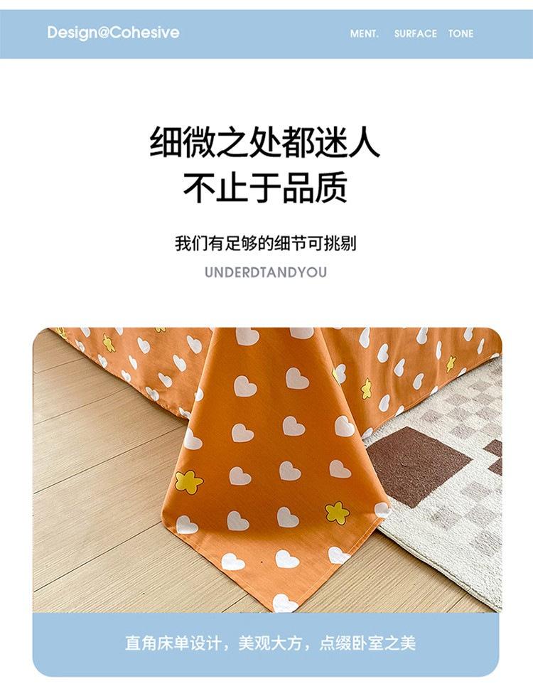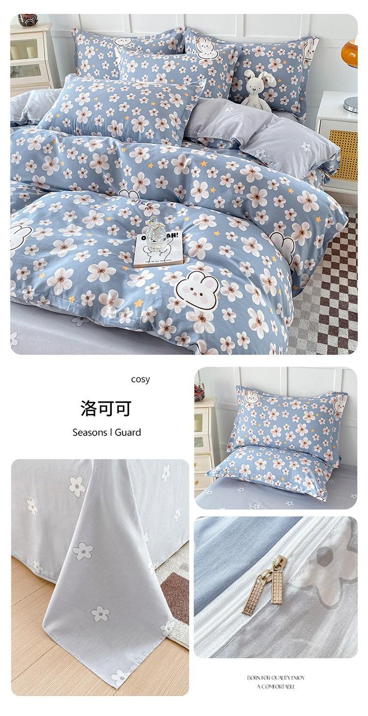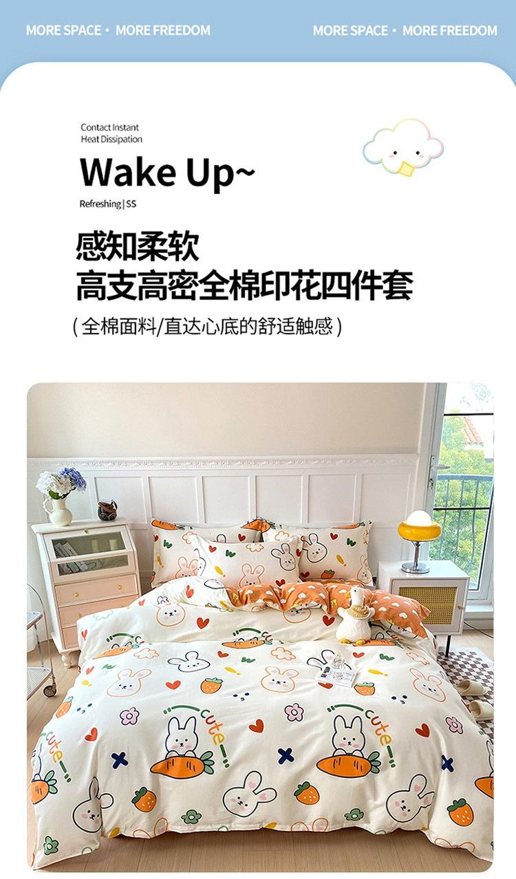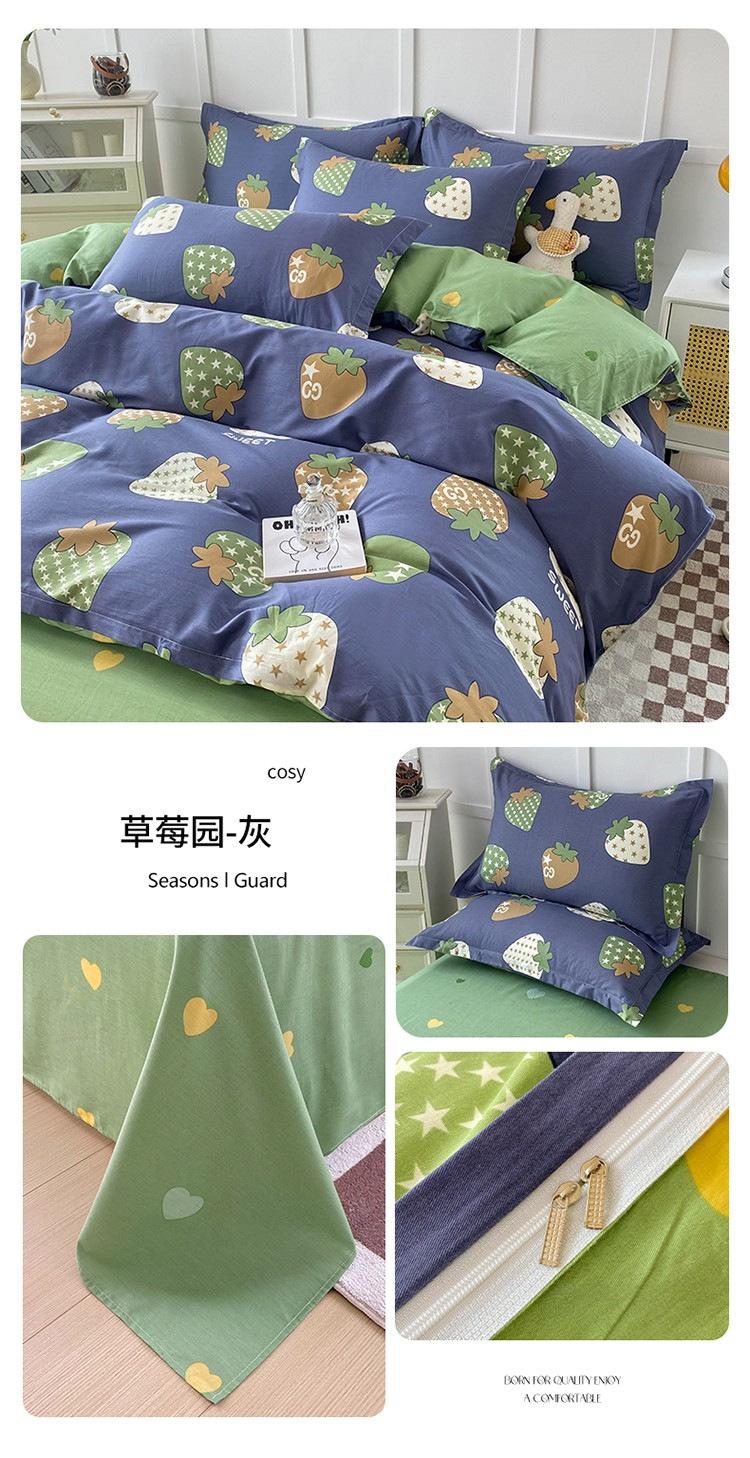 Conjunto de quatro peças de algodão puro com estampa fresca Lençol doméstico para duas pessoas Capa de colcha Dormitório estudantil Conjunto de três peças de algodão puro único