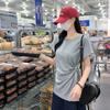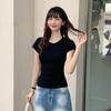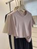 Camiseta Americana de Manga Curta com Ombro Direito para Mulheres 2025 Novo Design de Verão Estampada Decote Redondo Pulôver Aparência Emagrecedora Top Versátil