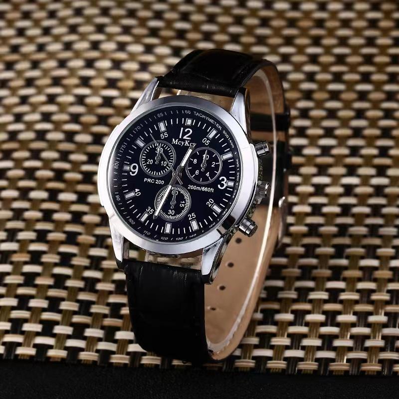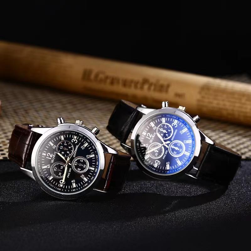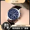 Relógio Masculino de Cinto de Vidro Azul de Três Olhos Relógio de Presente Relógio Masculino de Quartzo Fabricante Atacado Pronta Entrega Venda Quente