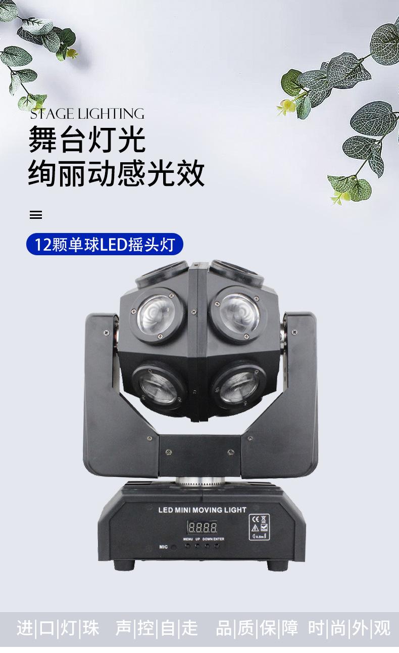 12 única bola LED movendo a barra de luz da cabeça do casamento feixe de laser luz controle de voz discoteca KTV flash lâmpada atmosfera luz