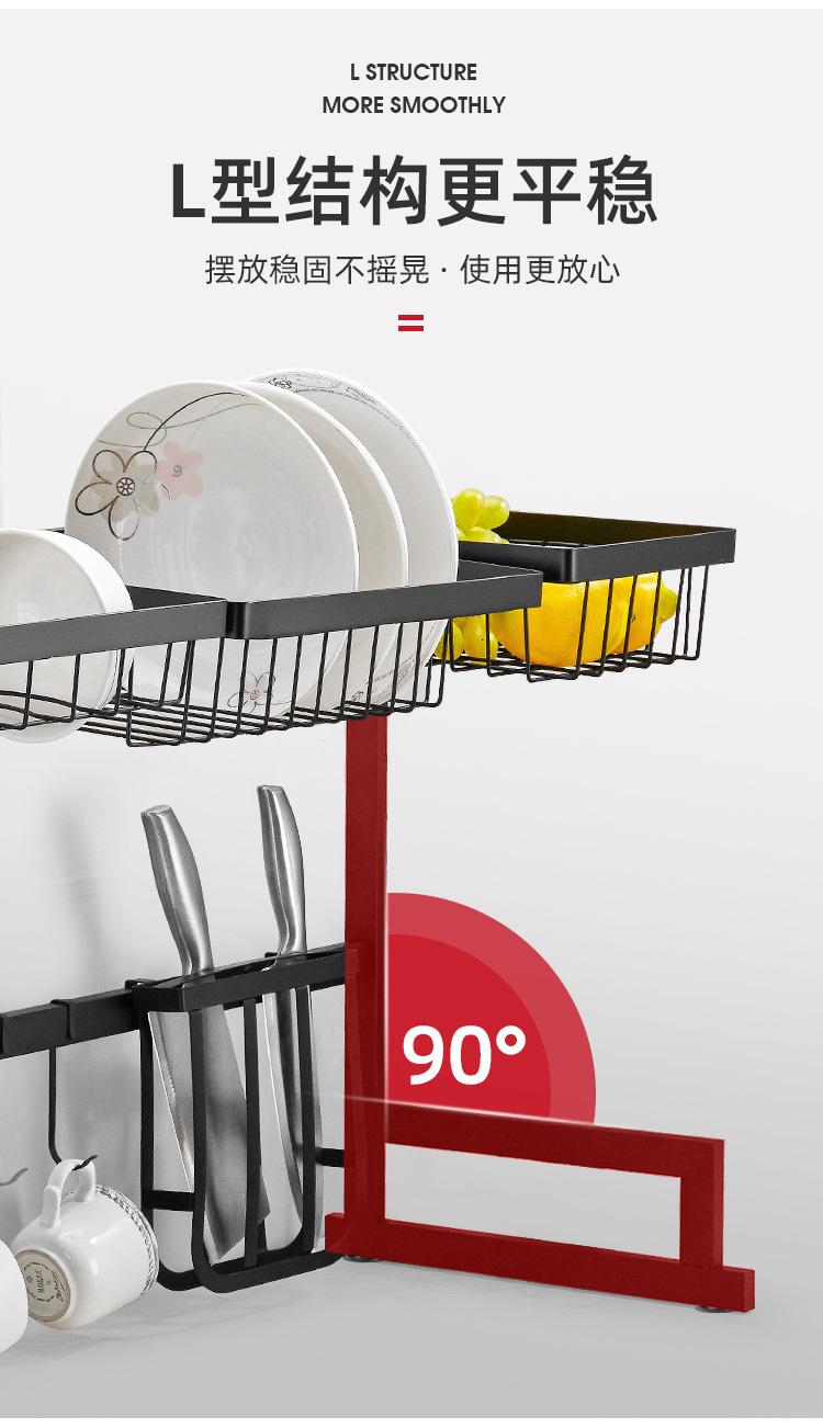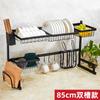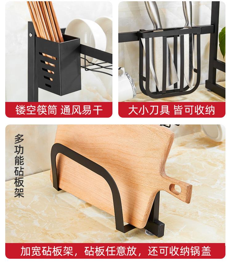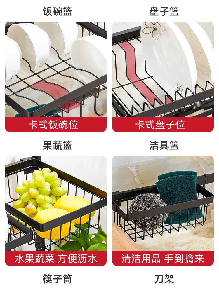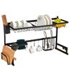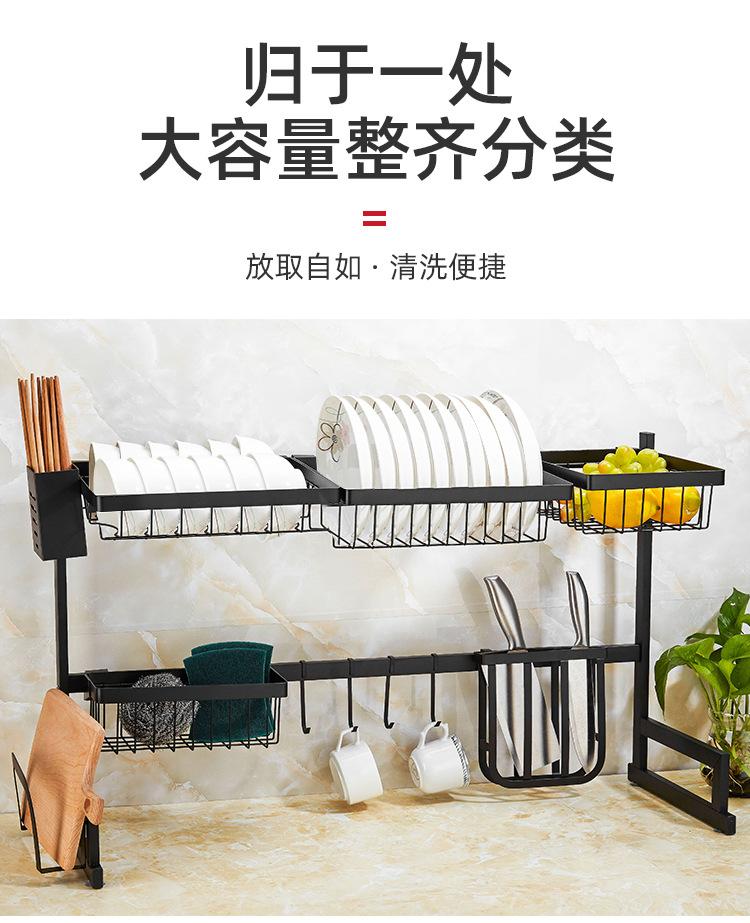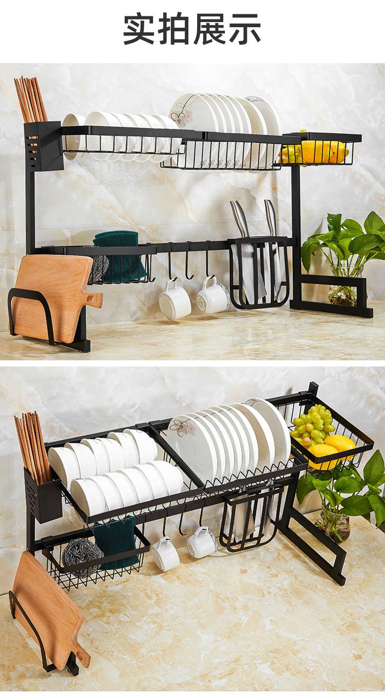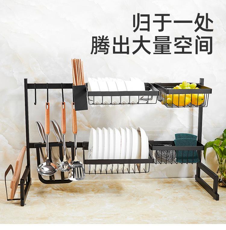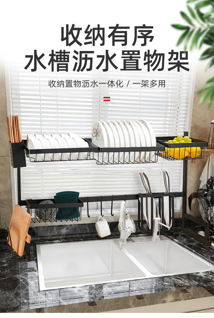 Prateleira de cozinha transfronteiriça, escorredor de pratos de aço inoxidável preto, escorredor de pratos, prateleira de armazenamento de pia multifuncional