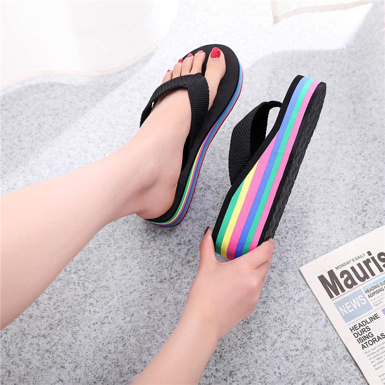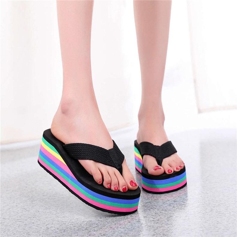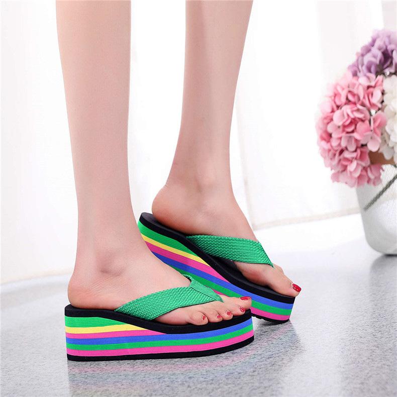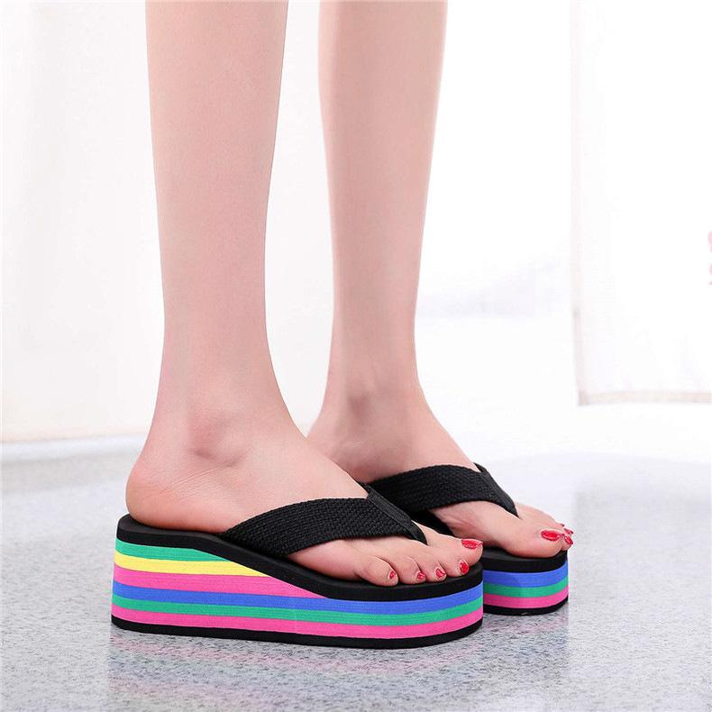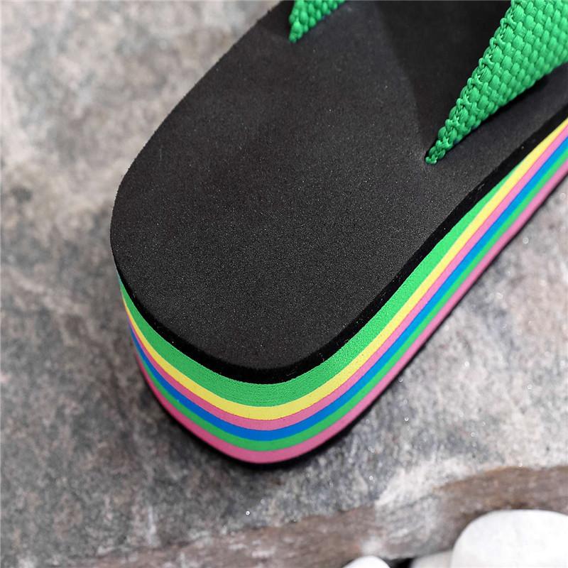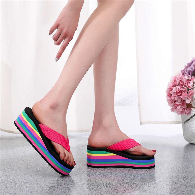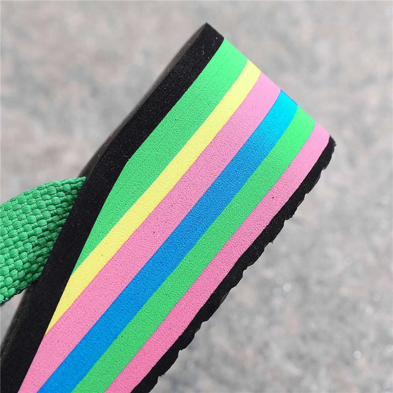 Sandálias de plataforma de verão arco-íris Salto alto Cyber chinelos comemorativos Chinelos femininos Chinelos femininos Coloridos Roupas externas femininas Sapatos femininos Casual Praia