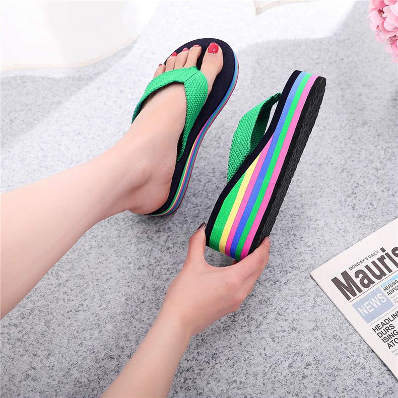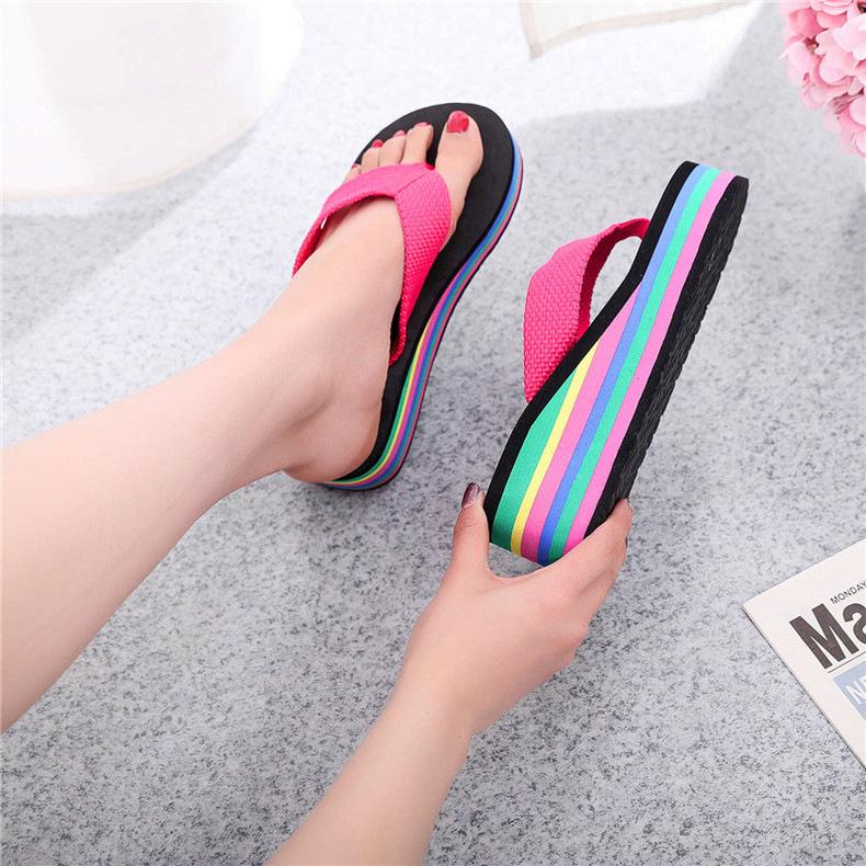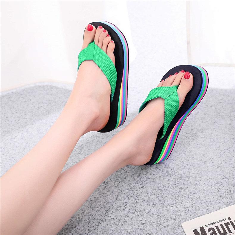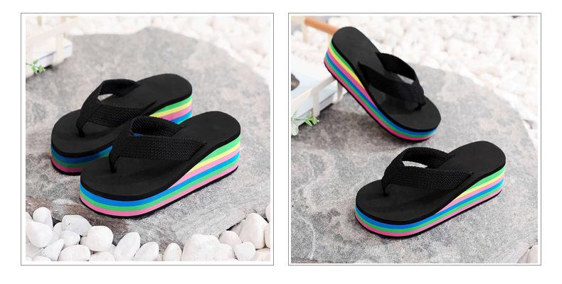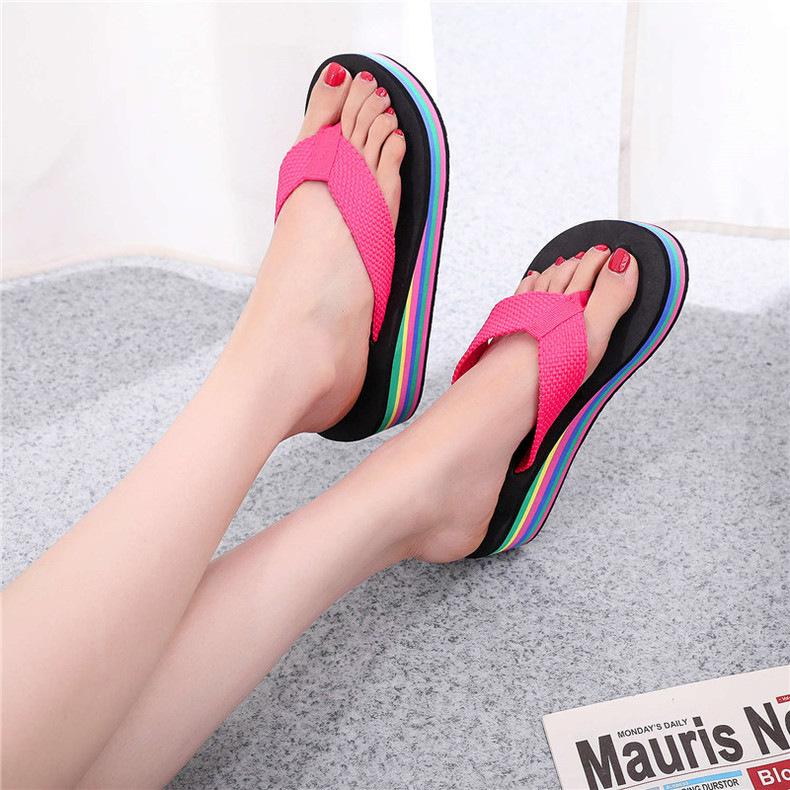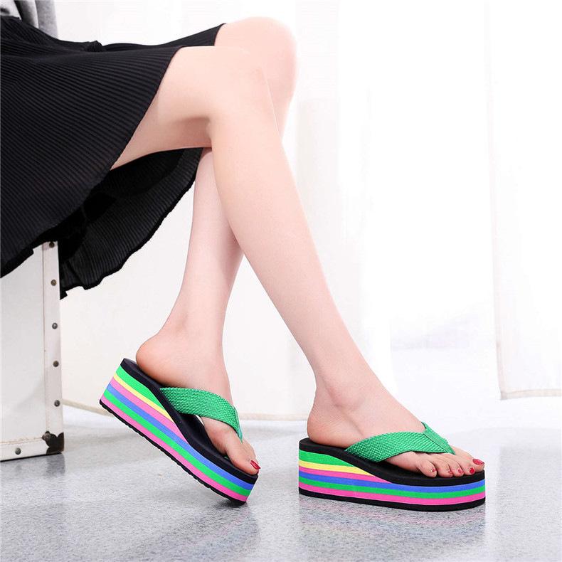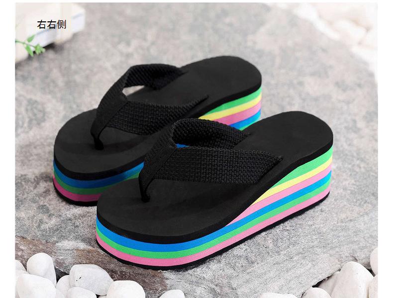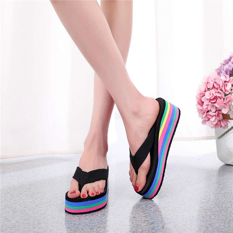 Sandálias de plataforma de verão arco-íris Salto alto Cyber chinelos comemorativos Chinelos femininos Chinelos femininos Coloridos Roupas externas femininas Sapatos femininos Casual Praia