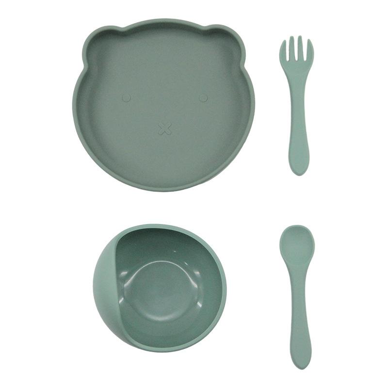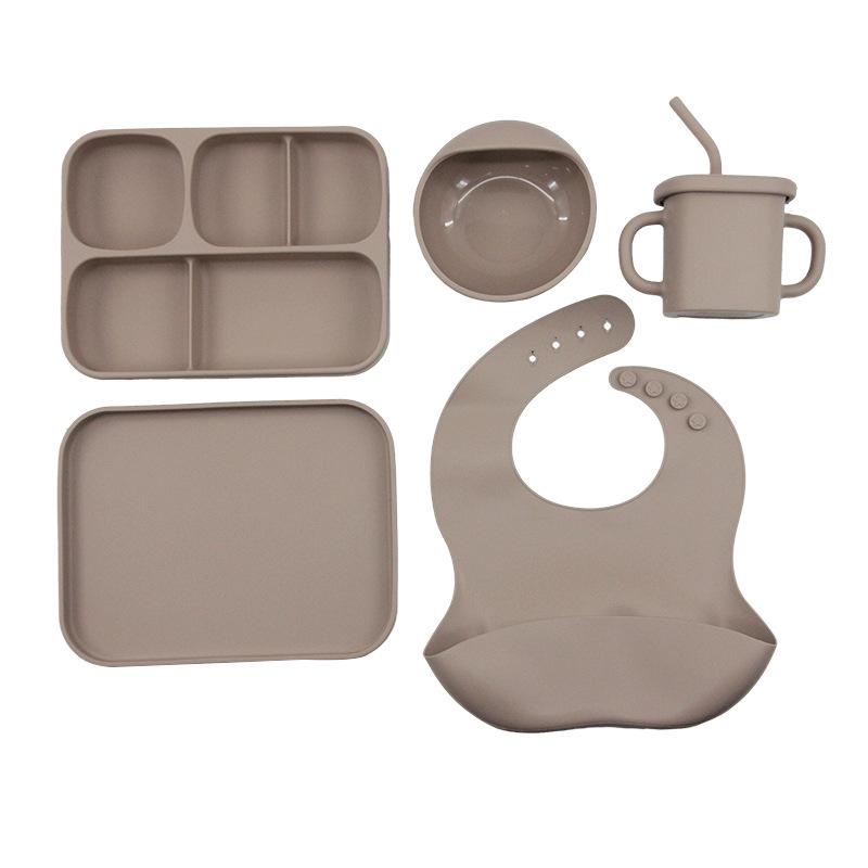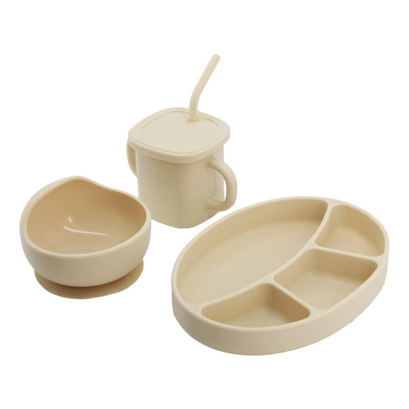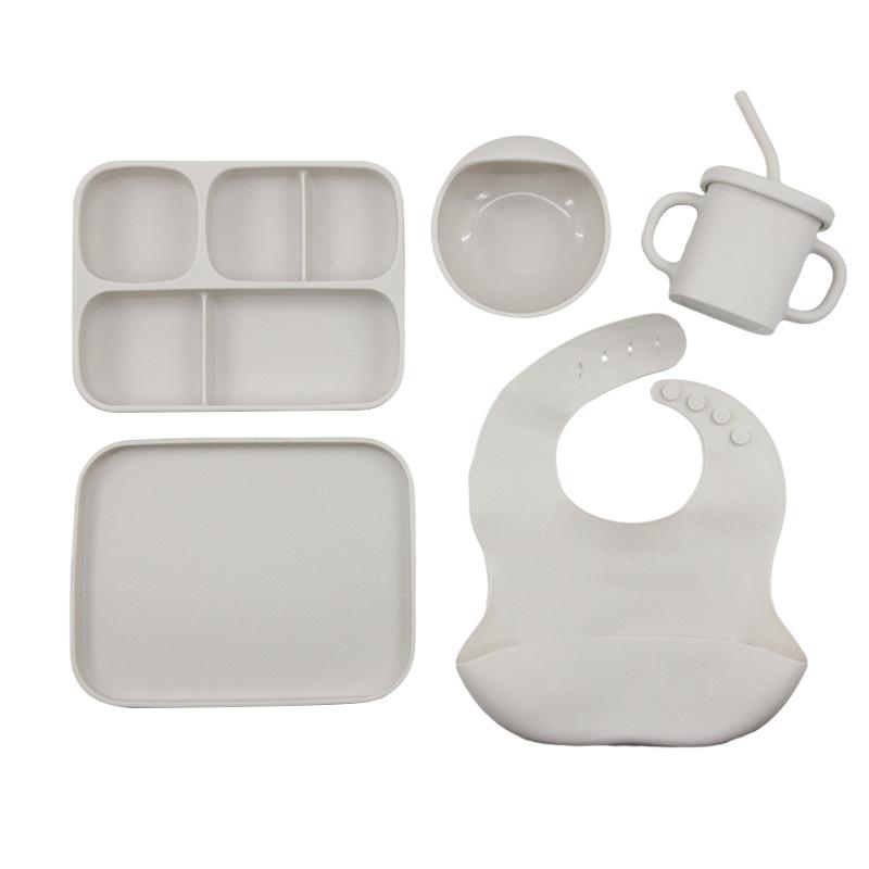 Fornecimento direto da fábrica transfronteiriça silicone babador do bebê tigela prato talheres colher Garfo resistente a gotas lanche copo terno