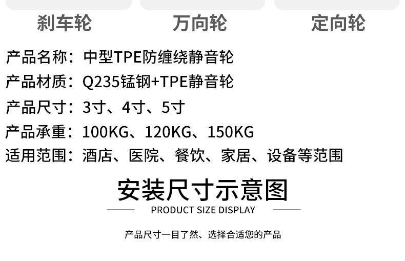 Rodízios anti-enrolamento TPE silencioso rodas de tamanho médio Universal com rodas de equipamento de freio pequenos rolos de carrinho atacado