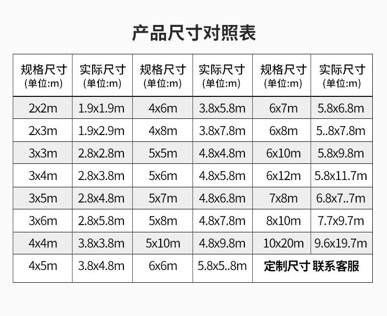 Os quatro cantos dos produtos da nossa loja só têm triângulos pretos se o tamanho for 2*4m ou maior, e a corda só é fornecida se o tamanho for 2*4m ou maior, fique atento!
