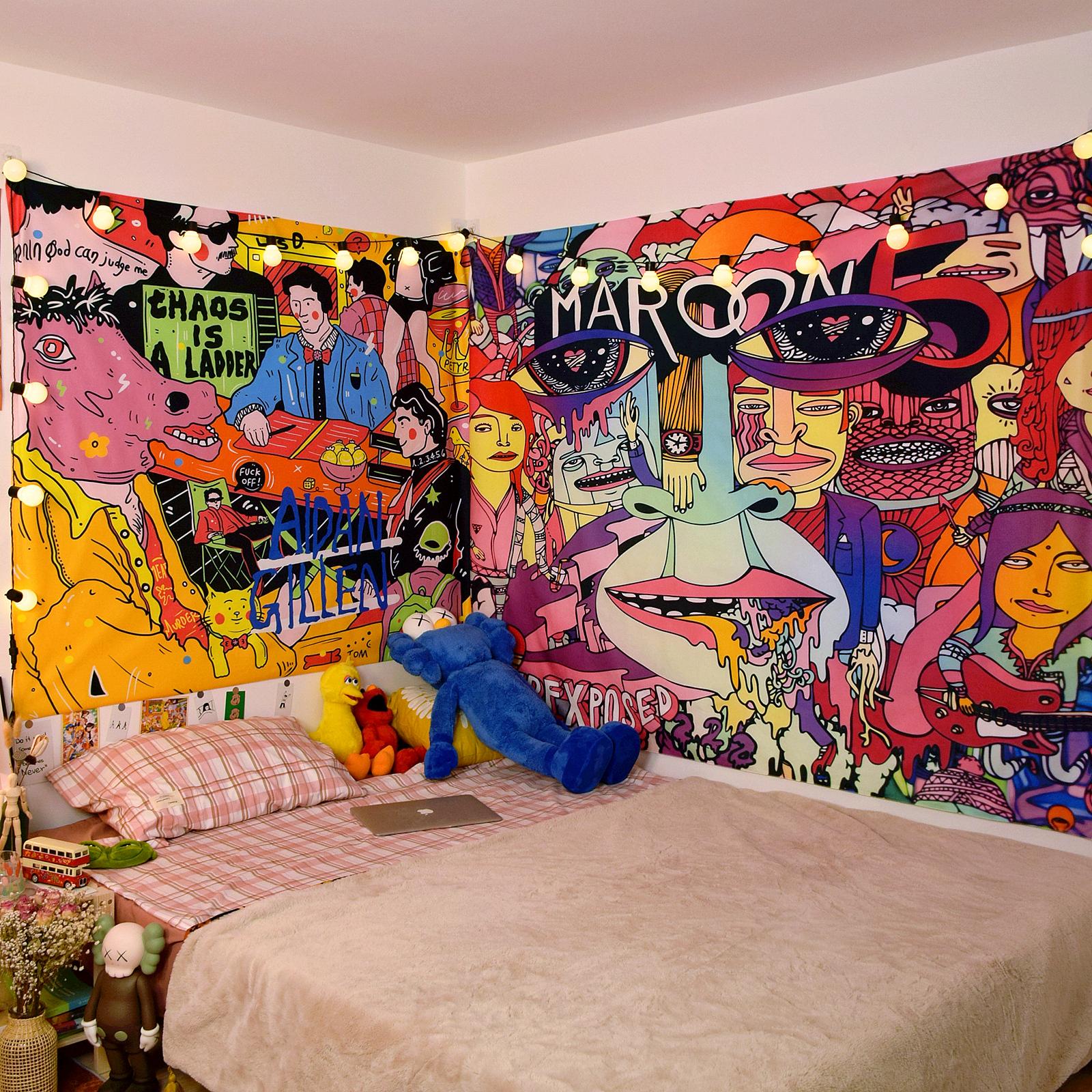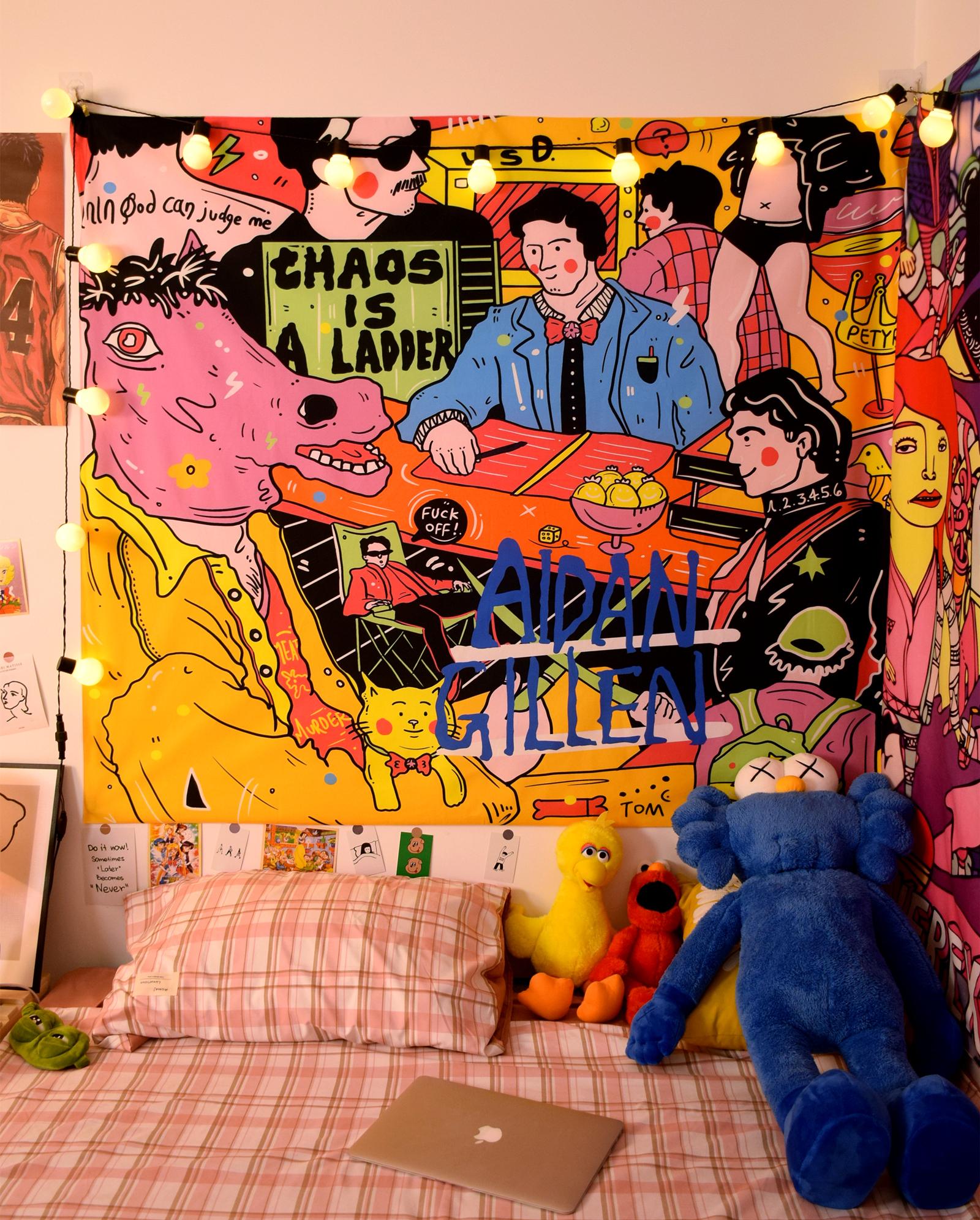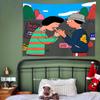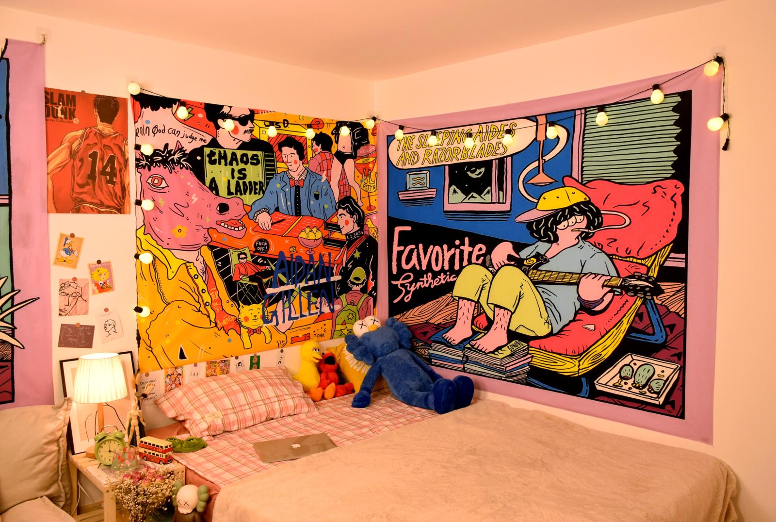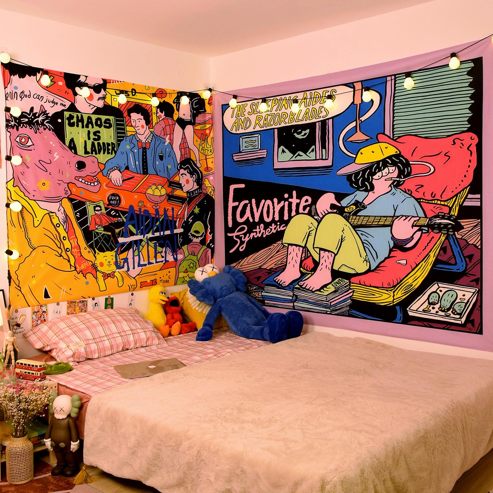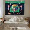 Ilustração de pano de fundo de desenho animado americano Quarto Cama de cabeceira Pano de parede Aluguel de casa Renovação Dormitório Decoração Tapeçaria