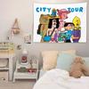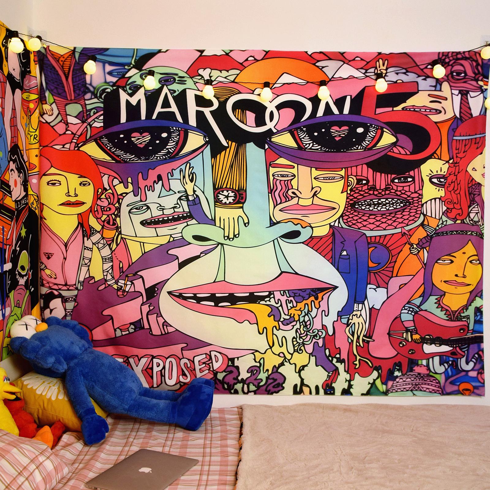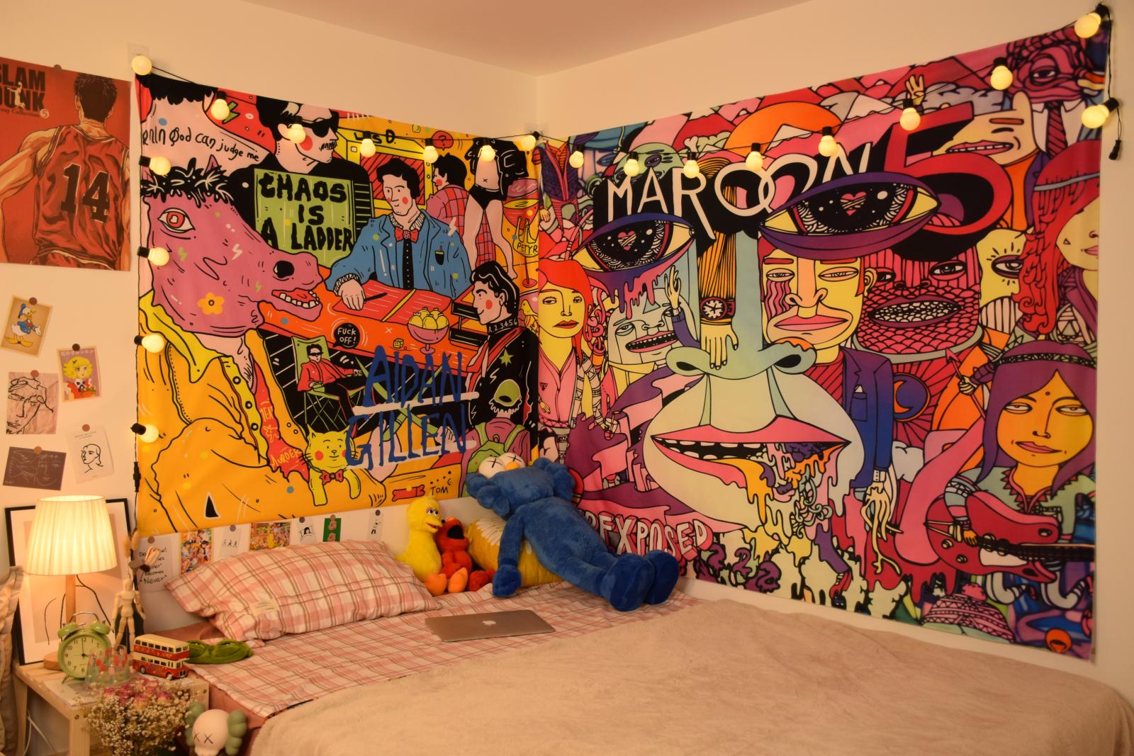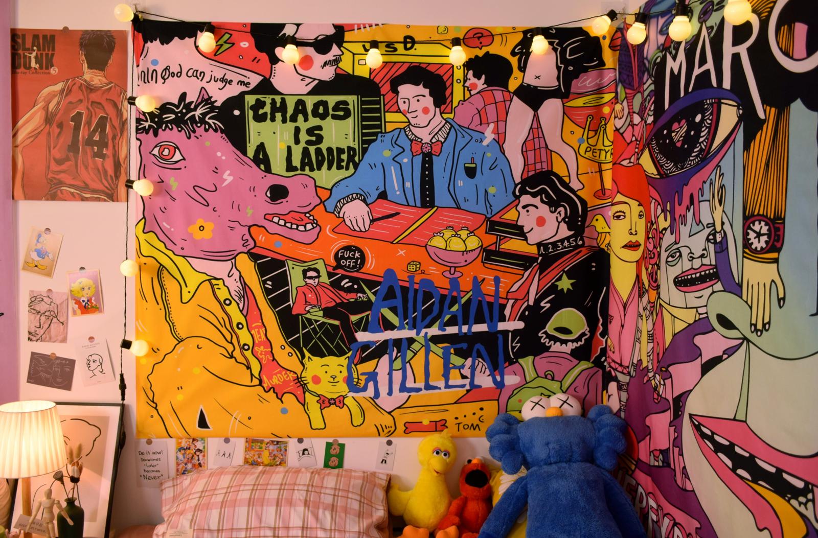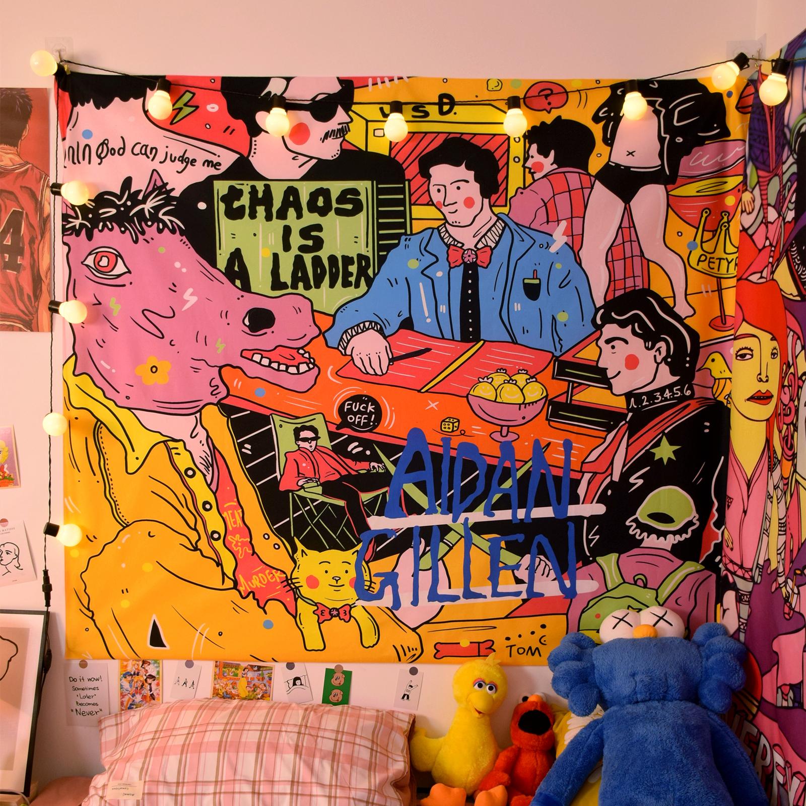 Ilustração de pano de fundo de desenho animado americano Quarto Cama de cabeceira Pano de parede Aluguel de casa Renovação Dormitório Decoração Tapeçaria